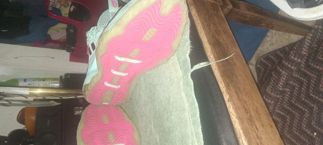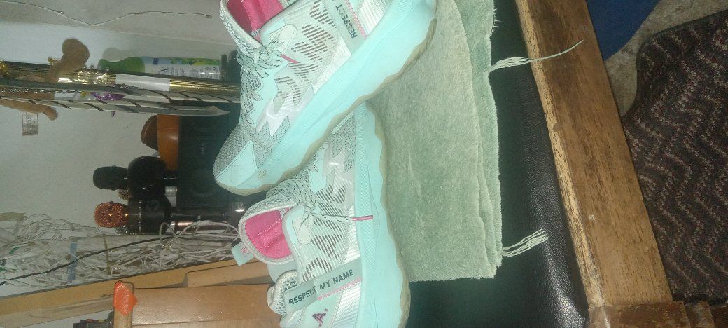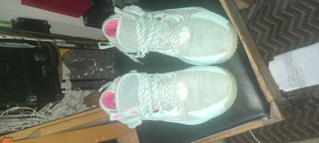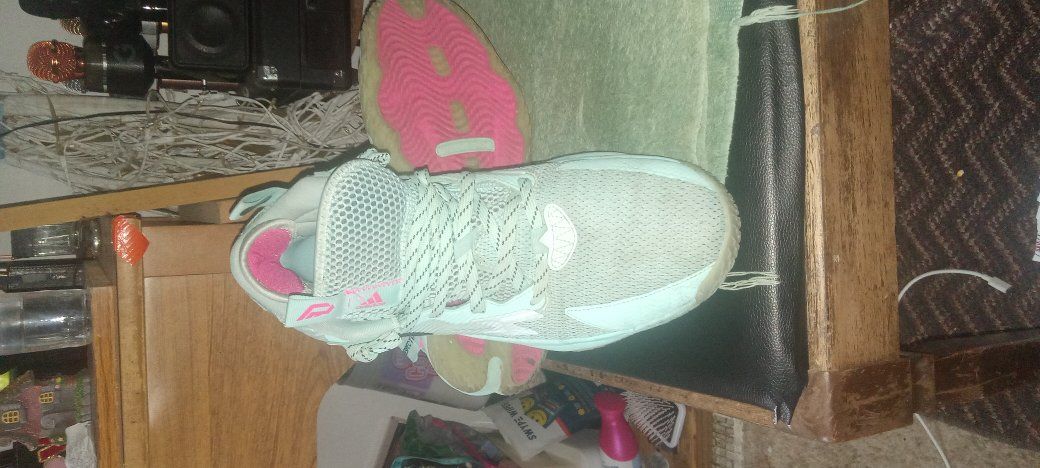 VenmoBasketball shoes in the "RESPECT MY NAME" energy aqua colorway. STYLE CODE(GZ6475) COLORWAY: ENERGY AQUA/CORE BLACK/TEAM SHOCK PiNK. USA SIZE 11.5 Damian Lillards 8th signature shoe with ADiDAS. It dmfeatures a bounce back midsole designed for energy return,cushoning & support, alongside a breathable airmesh textile upper. The design is inspired by Lillards clutch performance and features D.O.L.L.A branding. Damian is a graduate from Weber state University in O~TOWN UT. RESPECT. U.S.size 11.5 Asking $35 OBO