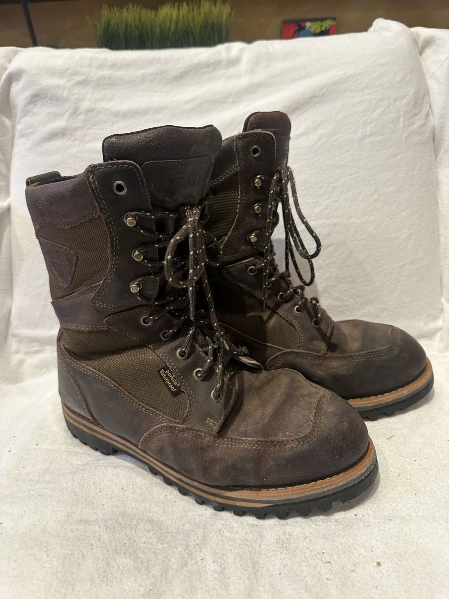 Tecs men’s size 12 brown leather and textile waterproof higher top hunting or work boots with 400 g of insulation. These are in good condition, see photos for details. I take cash or Venmo, but cash is preferred. Text is best. 801-201-4446. Check out my other ads for additional sizes and styles.