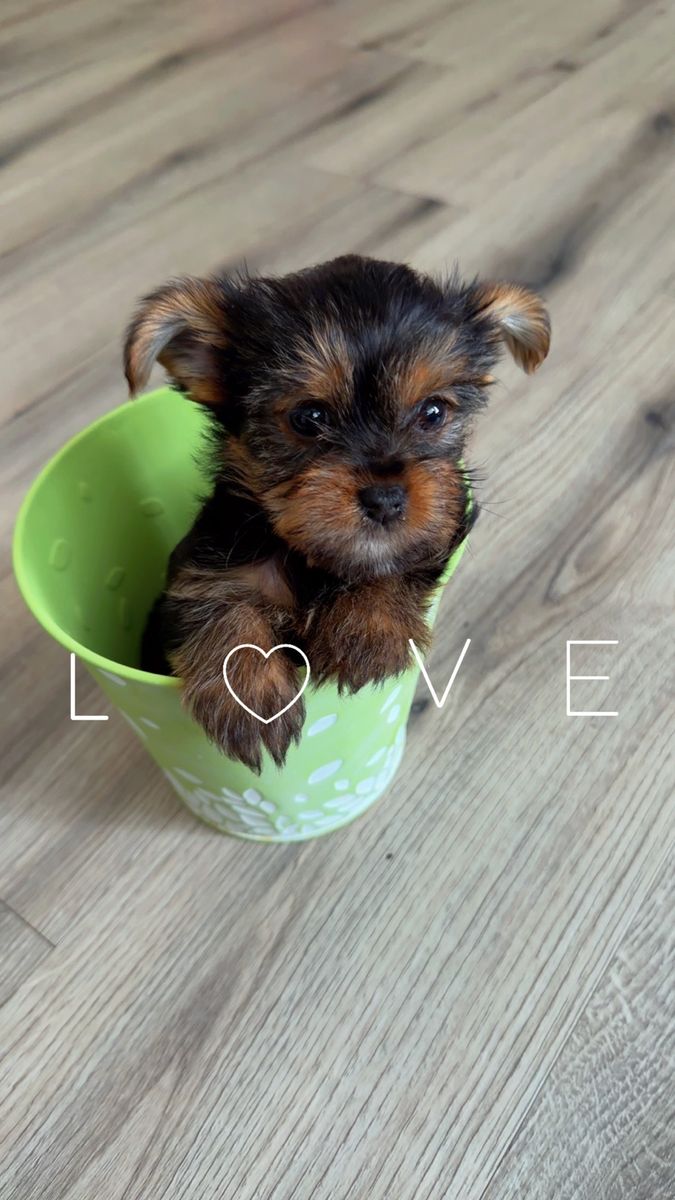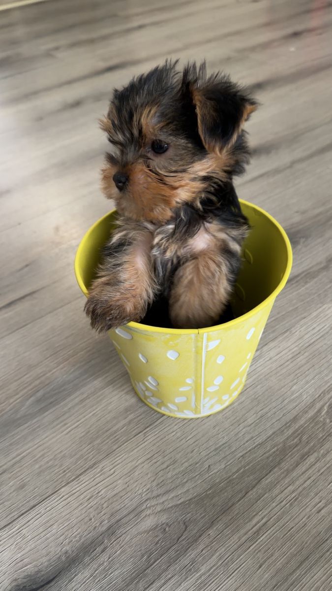 We have 3 beautiful little Yorkies. looking for their forever new loving family’s. They are full breed dad was AKC registered. Mom is not but she is full breed. Mom dad are about 4lbs. Puppies are not registered AKC. They Will come with first set of puppy vaccines. They are 6 weeks old they are drinking and staring to eat puppy food. Mom and dad are great with kids. Born date: Feb/ 12/26 2 girls 1 boy GIRL 1 PINK BUCKET