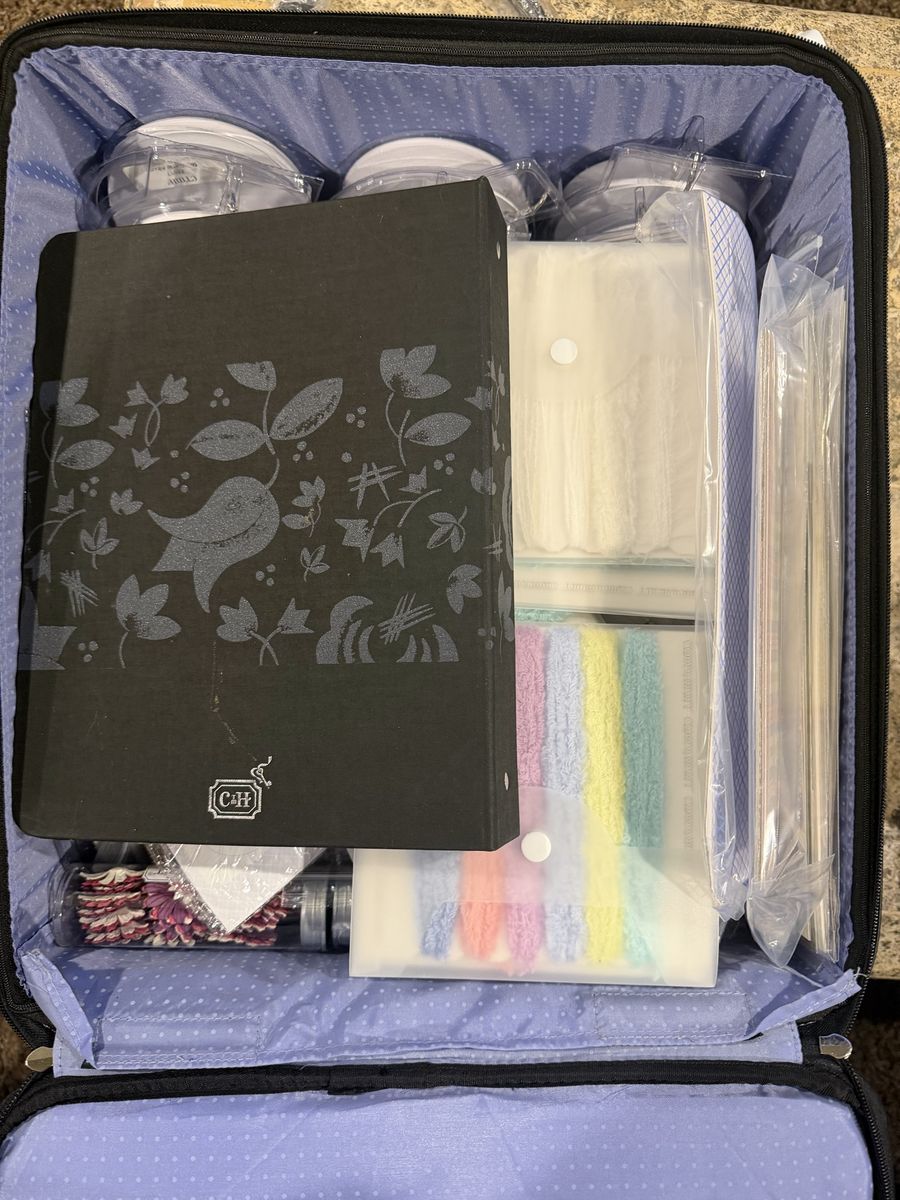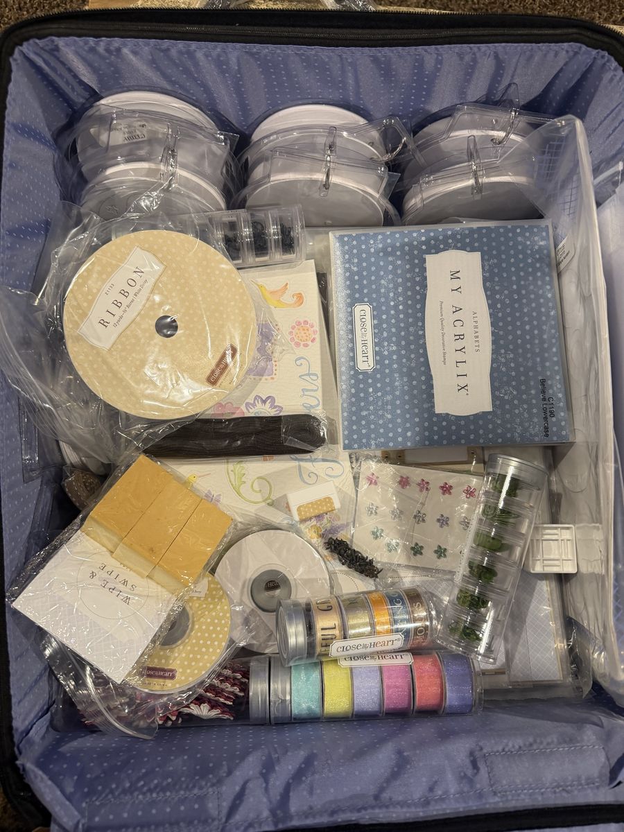 Brand New CTMH Rolling Scrapbook Tote + EVERYTHING Included! Alright, scrapbooking fans, this is the ultimate "starter kit" or a massive upgrade for your next craft night. Selling a brand new, never used Close To My Heart (CTMH) Rolling Storage Bag in black faux leather. Not only is the bag pristine, but it is fully loaded with scrapbooking materials. Everything you need to get started or restock your stash! It includes: • Tons of Materials: I’m including all the scrapbooking supplies inside (paper, stickers, embellishments, etc.). Condition: 10/10. The bag still has the protective plastic on the handles (as you can see in the photo!). It’s literally never been used.