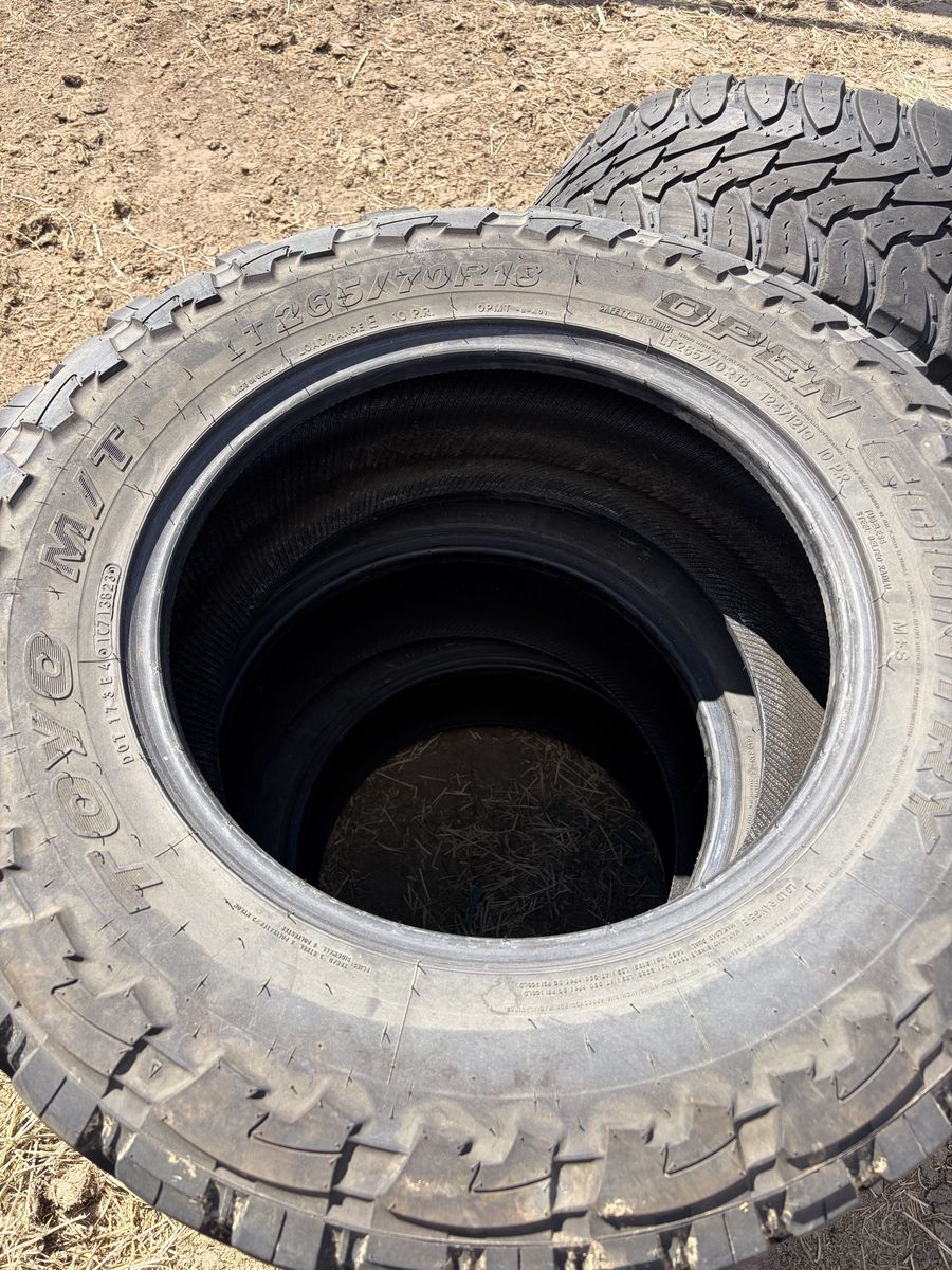 Used Toyo Open Country MT tires. 265 70 18. Two still have good tread left.