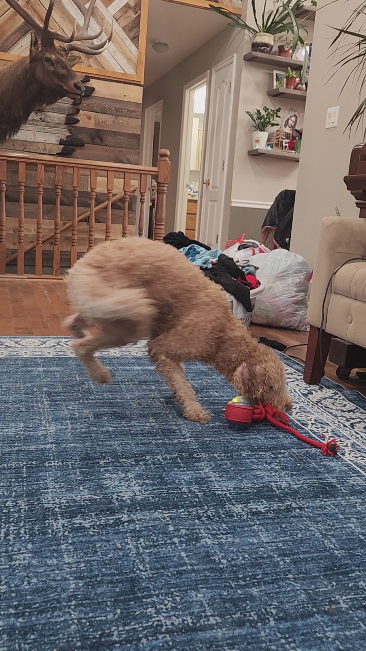 GooglePayDuke is the best boy! He is very loving, smart, and loyal. He loves kids and gets along great with other animals. He is easy to train and has a great natural instinct for bird hunting including scent tracking and pointing despite never being trained to do so. He has a plush, apricot, double curl coat with a partial tuxedo (white chest). He also has and adorable chocolate brown nose, paw pads, and toes. Pictures of his first litter are included above. His genetic traits for coat color are: ee KBky ata DD NN bb NI Ssp mm rr hh He is clear of 225 genetic health conditions Embark tests for which I can send you if requested. He has only bred once producing 10 puppies from one tie (pictured above). He is approximately 29 pounds and 3 years old. A negative brucellosis test is required for natural ties. Price includes two ties and one free re-breed on next cycle if pregnancy doesn’t occur the first time. We are located in Cache Valley, UT. Travel to you may be possible, but we prefer your girl come to us. She can be boarded for free during the breeding process, but you will need to provide her food and any other necessities. She will be kept indoors and in our fully fenced backyard while here. And most importantly, she will be smothered with love! For more information, please contact Jodie.