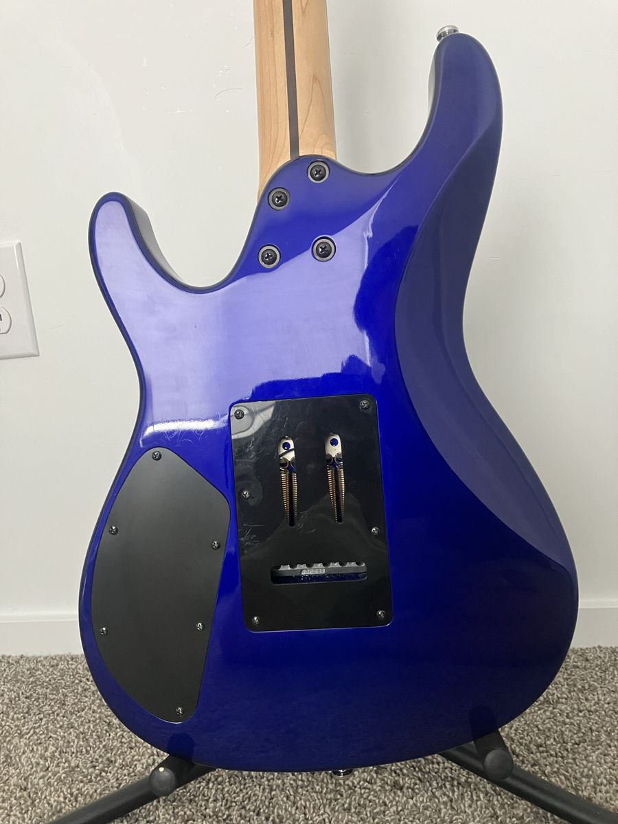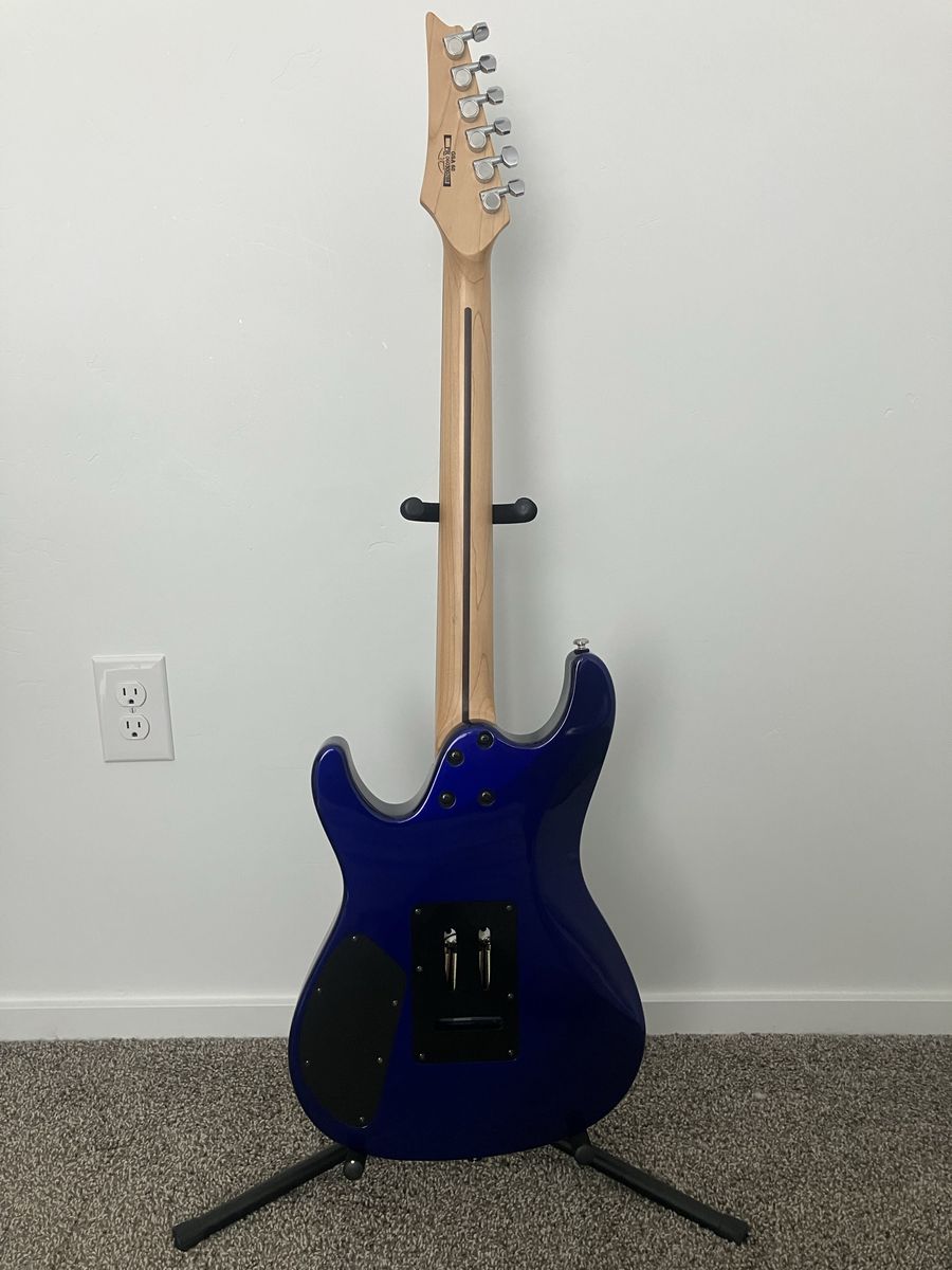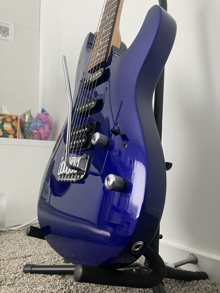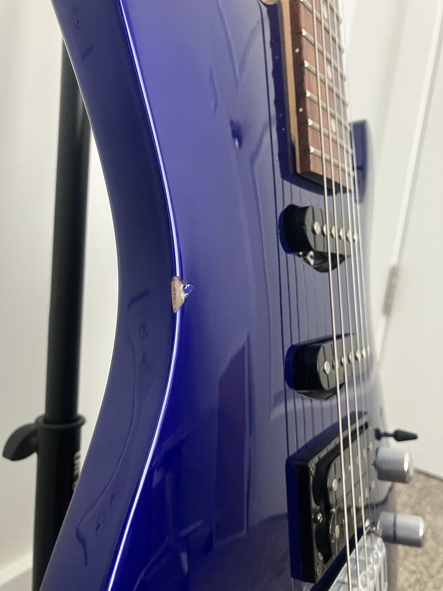 Features a bridge humbucker for thick rock tones and two single-coils for clean, bell-like Strat sounds, it does a small chip on the side shown in photos.