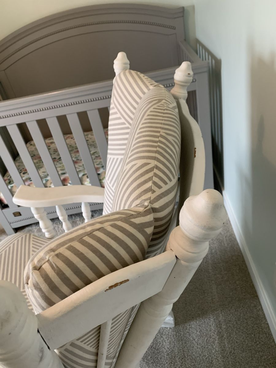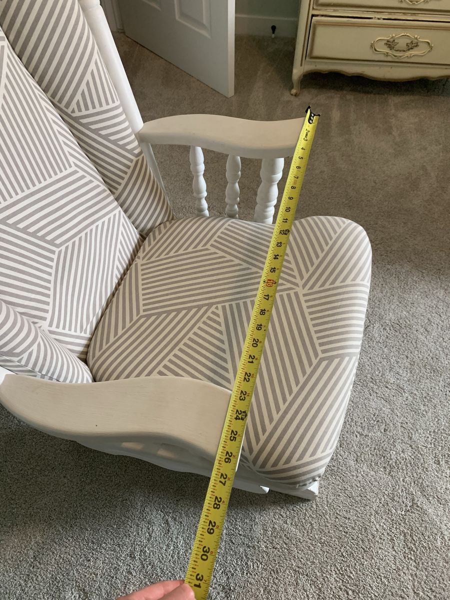 VenmoI painted and reupholstered this rocking chair about 5 years ago. Still in pretty good condition but could use some touch ups. Measurements are in the pictures.