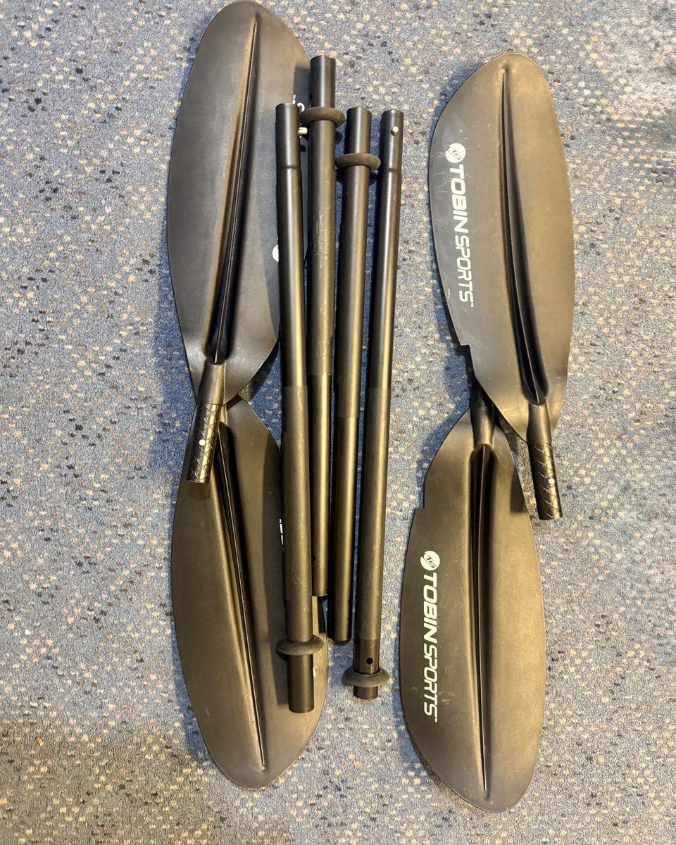 Includes: (2) Breakdown aluminum paddles, removable fins, and the heavy-duty Outdoor Products storage bag.