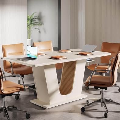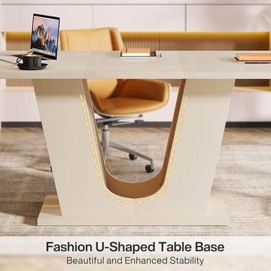 New in Box!!! ••This sleek cream white conference table, featuring a chic U-shaped base, offers a contemporary touch and versatile functionality suitable for meetings or as a dining/computer desk, with robust stability ensuring long-lasting use in any setting.