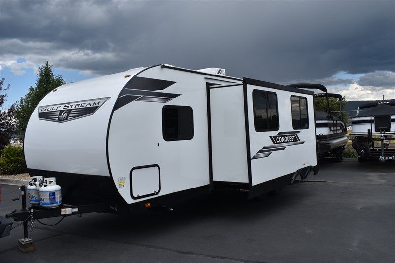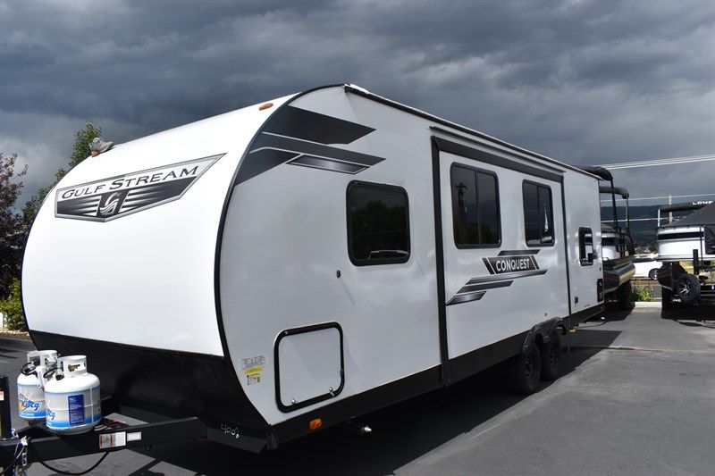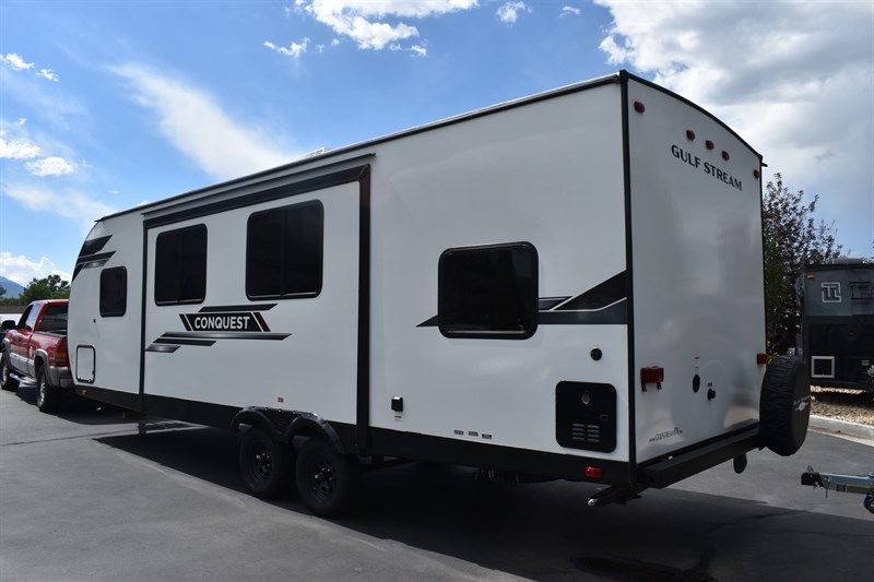 2024 Gulf Stream Conquest 269BH Sleeps Up To 10 People. Queen Bed, Double Bunk Beds, Convertible Sofa Bed, Full Bathroom, Full Kitchen With Fridge and Freezer, 3 Burner Stove, Microwave, Kitchen Table (Turns Into a Bed), Power Awning, Bunch of Storage, 30 Gallon Fresh Water Tank, 37 Gallon Grey Water Tank, 37 Gallon Black Tank, 16,000 BTU Furnace, 6 Gallon Water Heater, 13,500 BTU Air Conditioner, 3 Year Structural Warranty and So Much More!!!