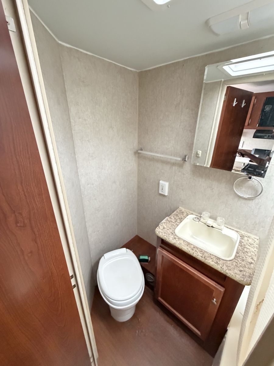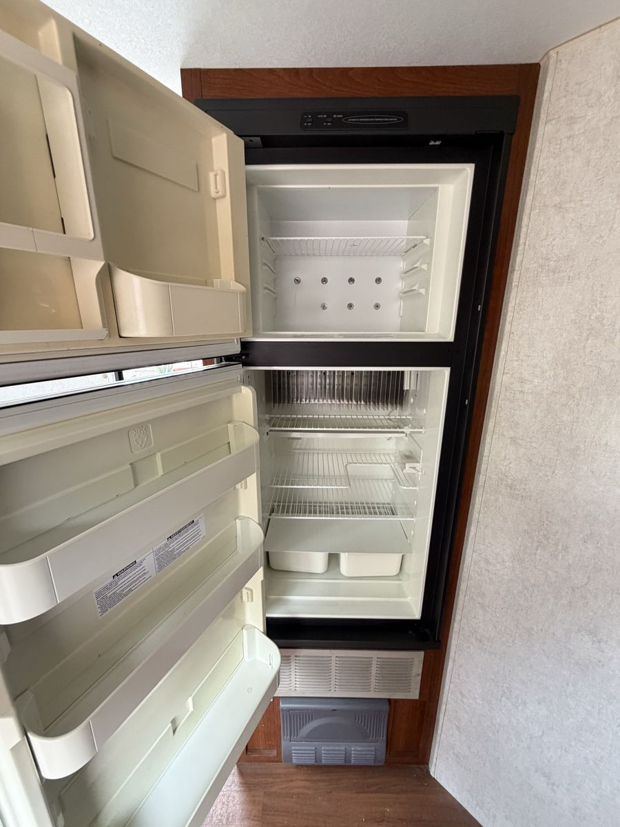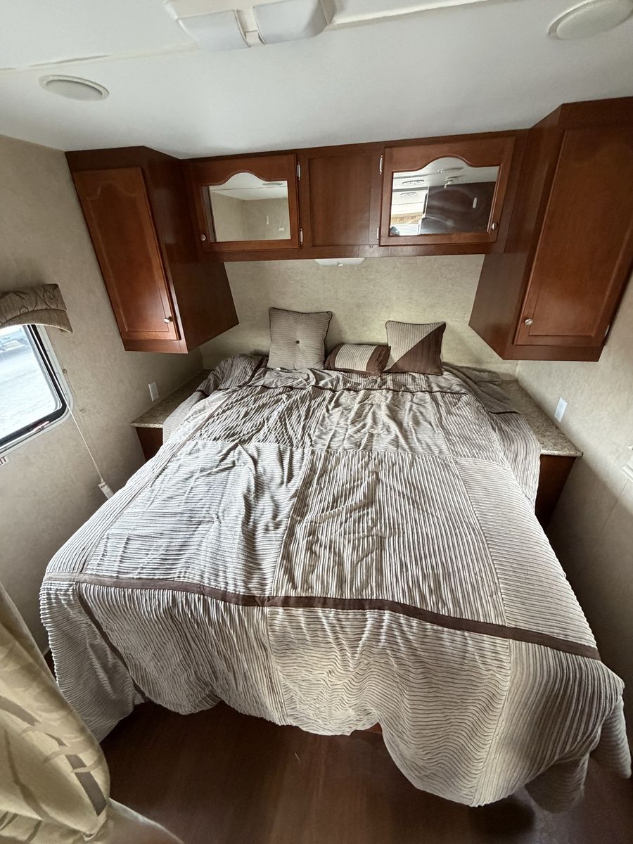 • Dry weight approx. 4,000 lbs • Sleeps 4 (front queen bed + dinette) • Full kitchen (stove, oven, fridge, microwave) • Bathroom with shower and toilet • A/C and heat both working • Electric awning – working • Plenty of storage