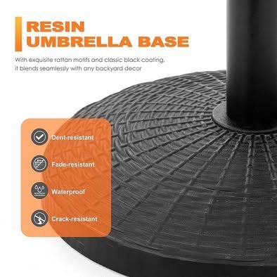 New in box!!! The surface of this patio base stand is well-coated with a water-resistant coating, so the color won't fade in any wet patio climate. There's also less worry about any color getting on the fabric while being carried or on the ground when stored.