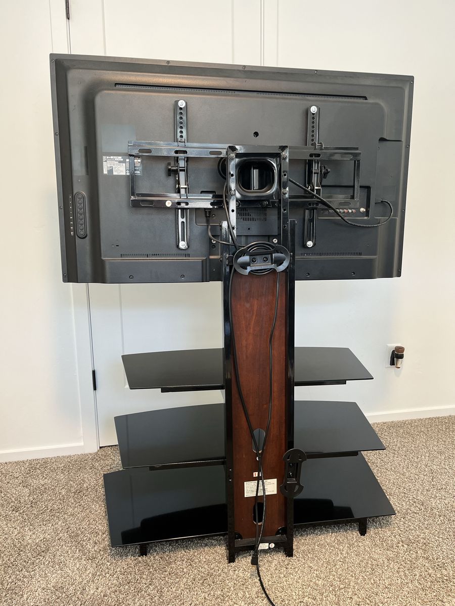 Need to free up space in the house! TV Works perfectly, all ports functional. Glass shelving, simple disassembly & install.