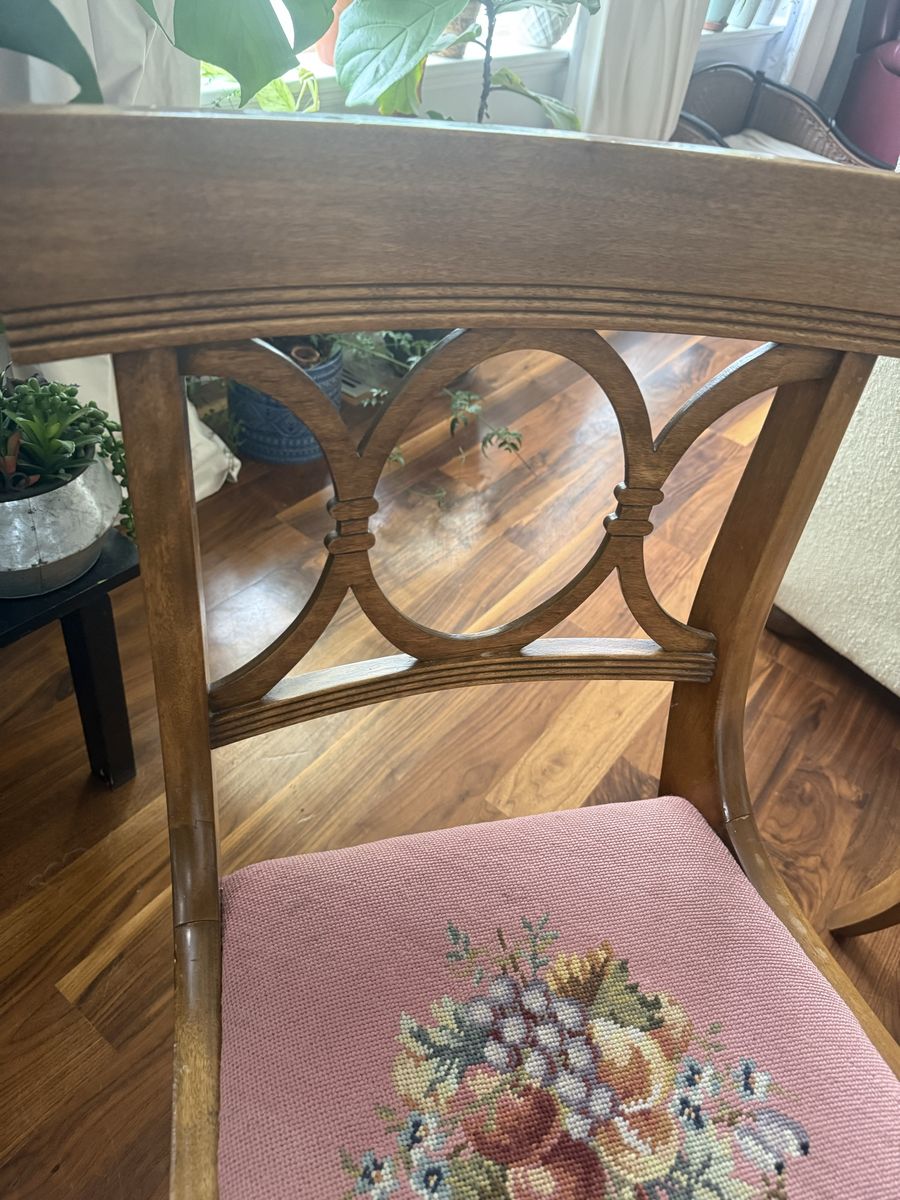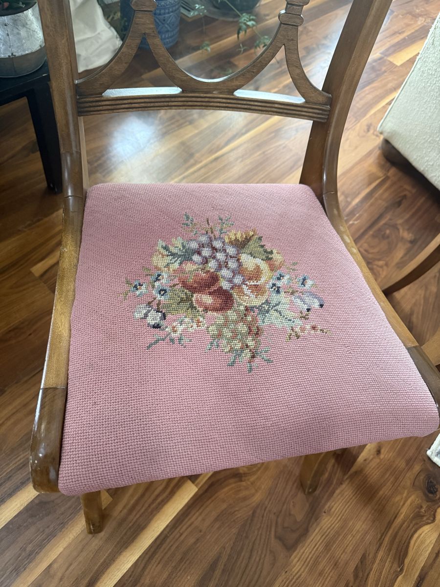 VenmoBeautiful embroidered antique wooden chairs in perfect conditions no cracks no brakes beautiful condition