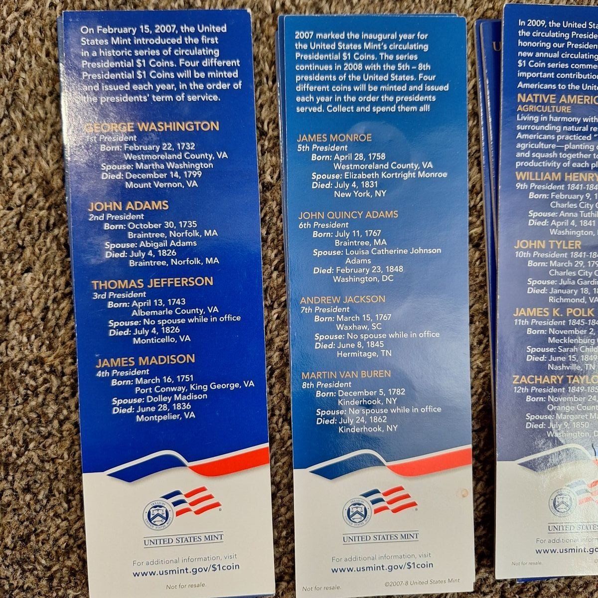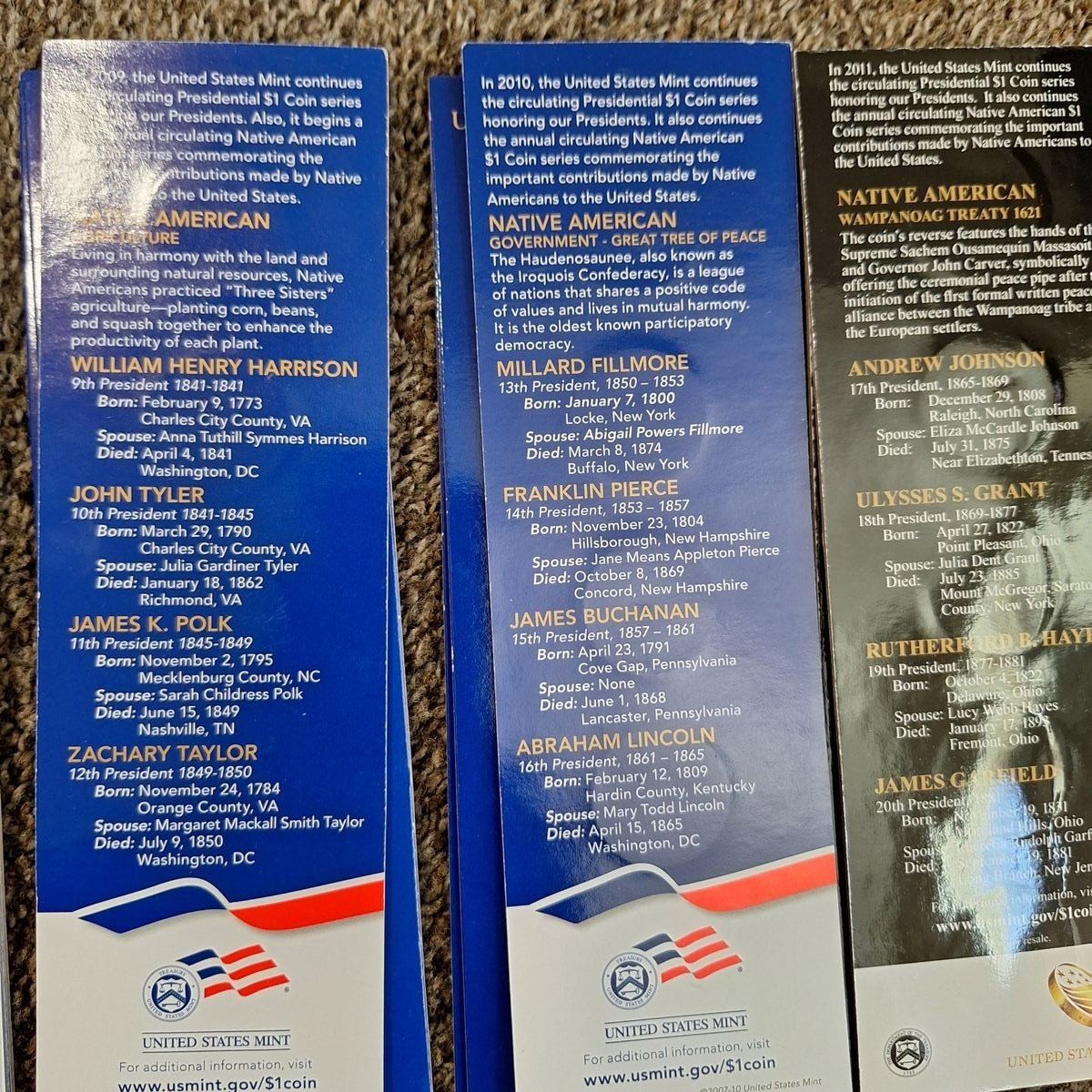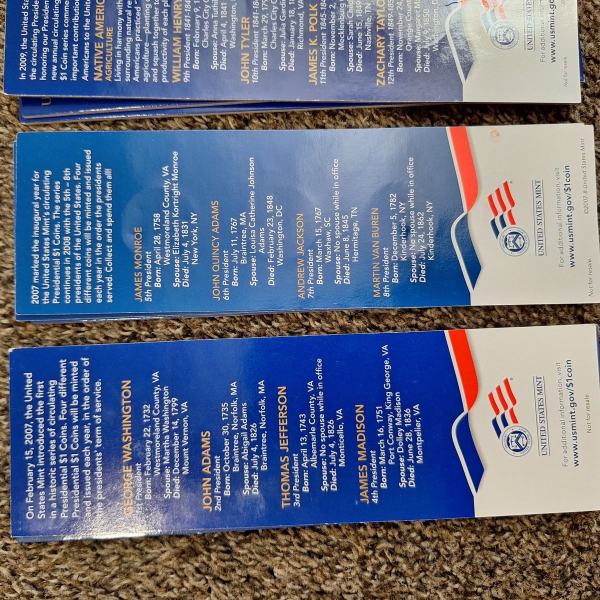 $1 Presidential Coin Collection Holders. 2007-2011. 3 sets available. $5 a set.