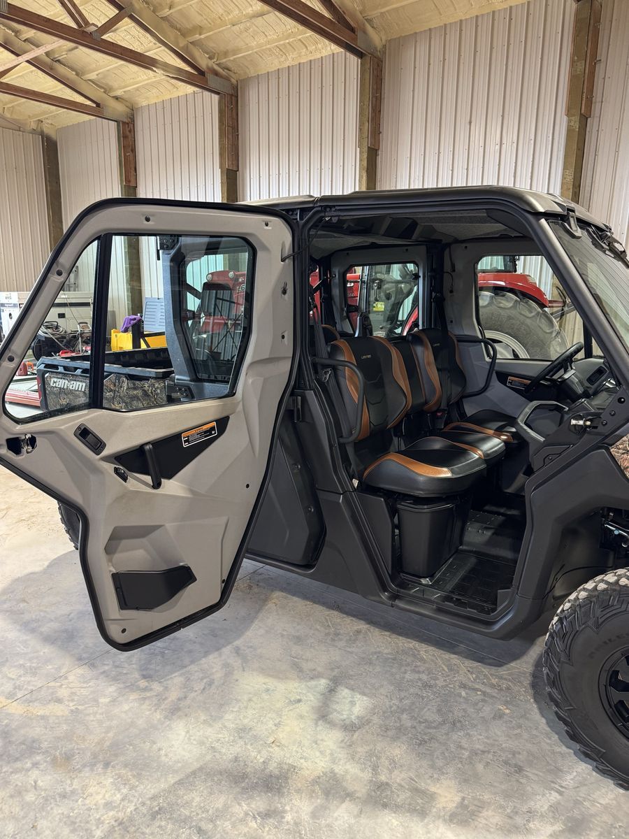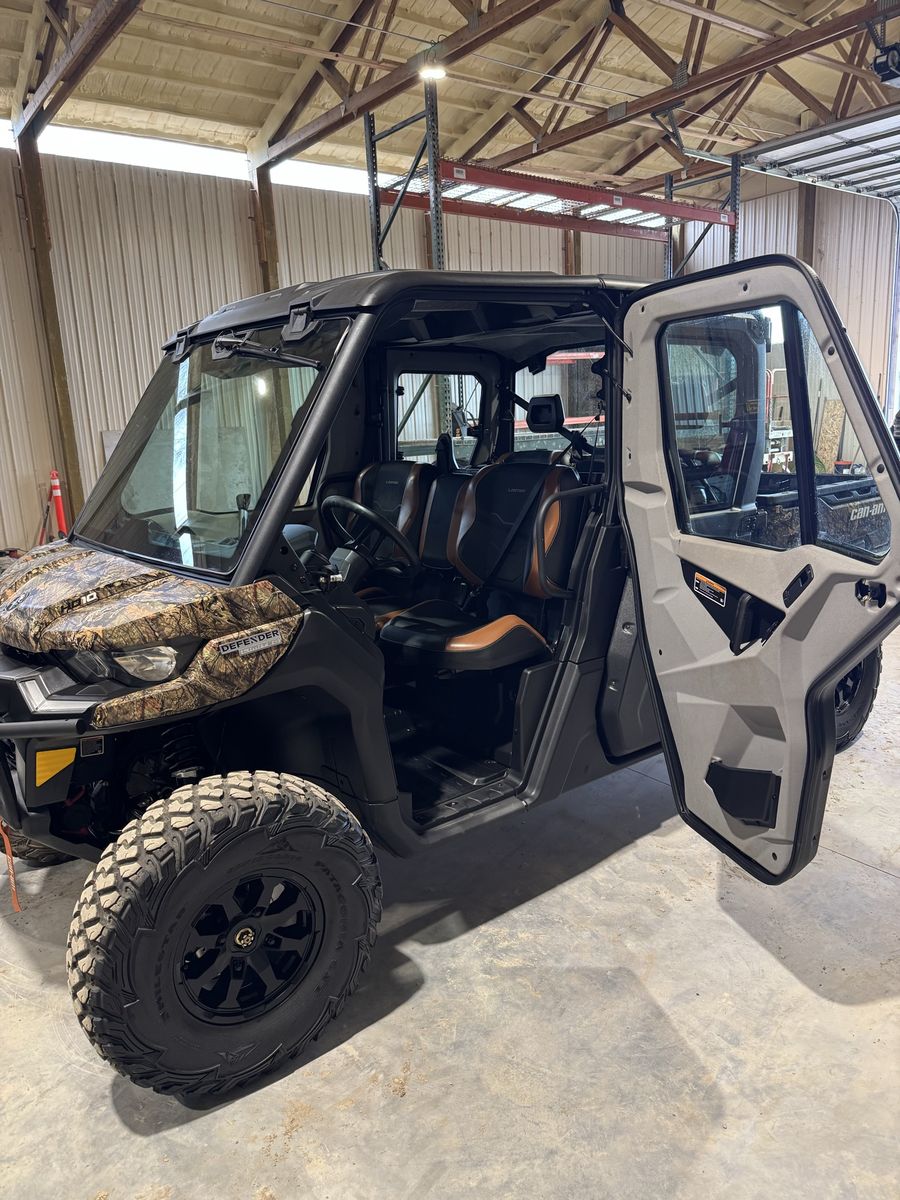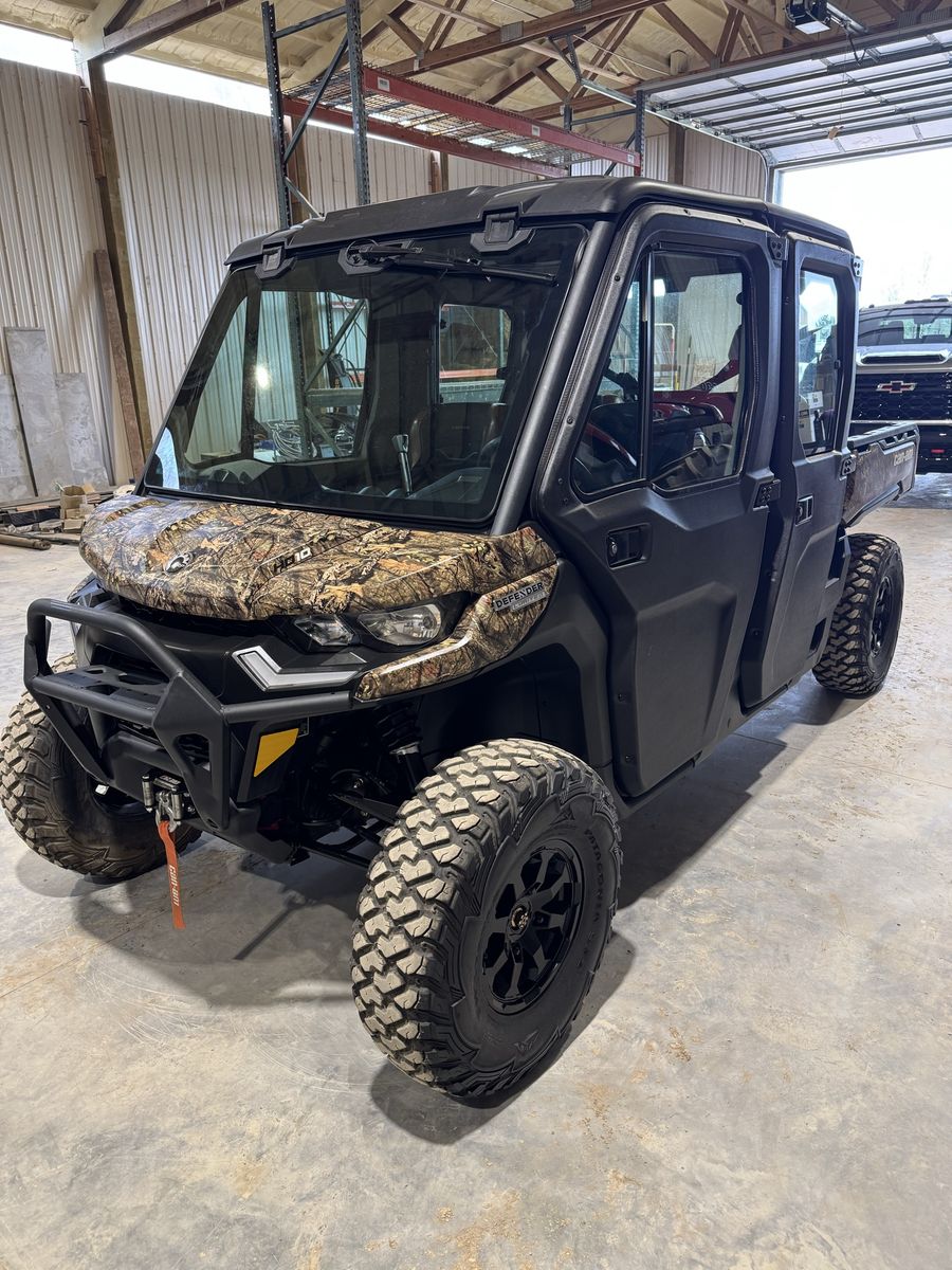 2021 Can-Am Defender MAX Limited HD10 in camo. This is the Limited model with a fully enclosed cab, heat, and A/C. Super comfortable year round whether you're hunting, trail riding, or working.