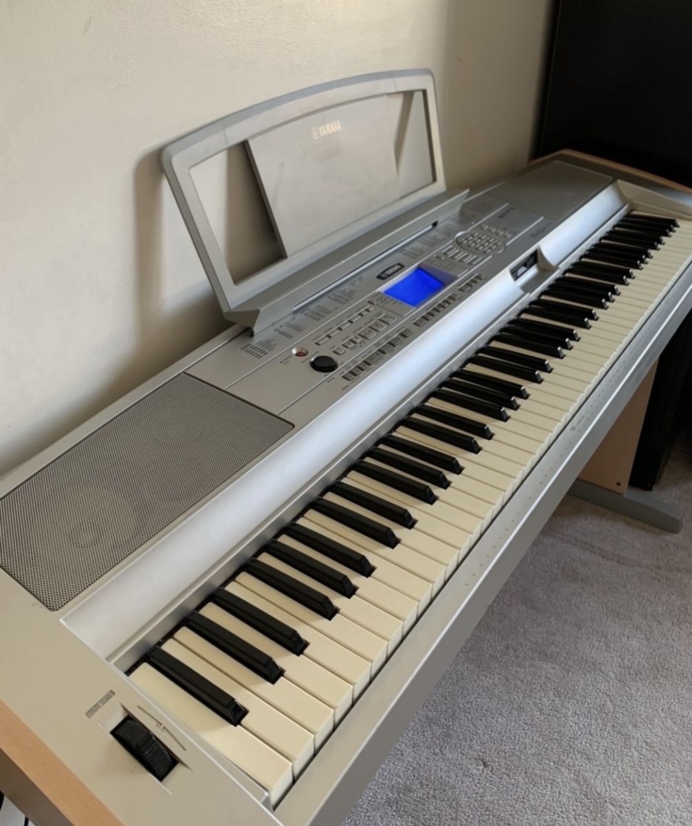 VenmoYamaha DGX-500 = 505 Keyboard Workstation in good Working condition, featuring 88 touch-sensitive, piano-style keys, built-in speakers, and a wide selection of voices and accompaniment styles.