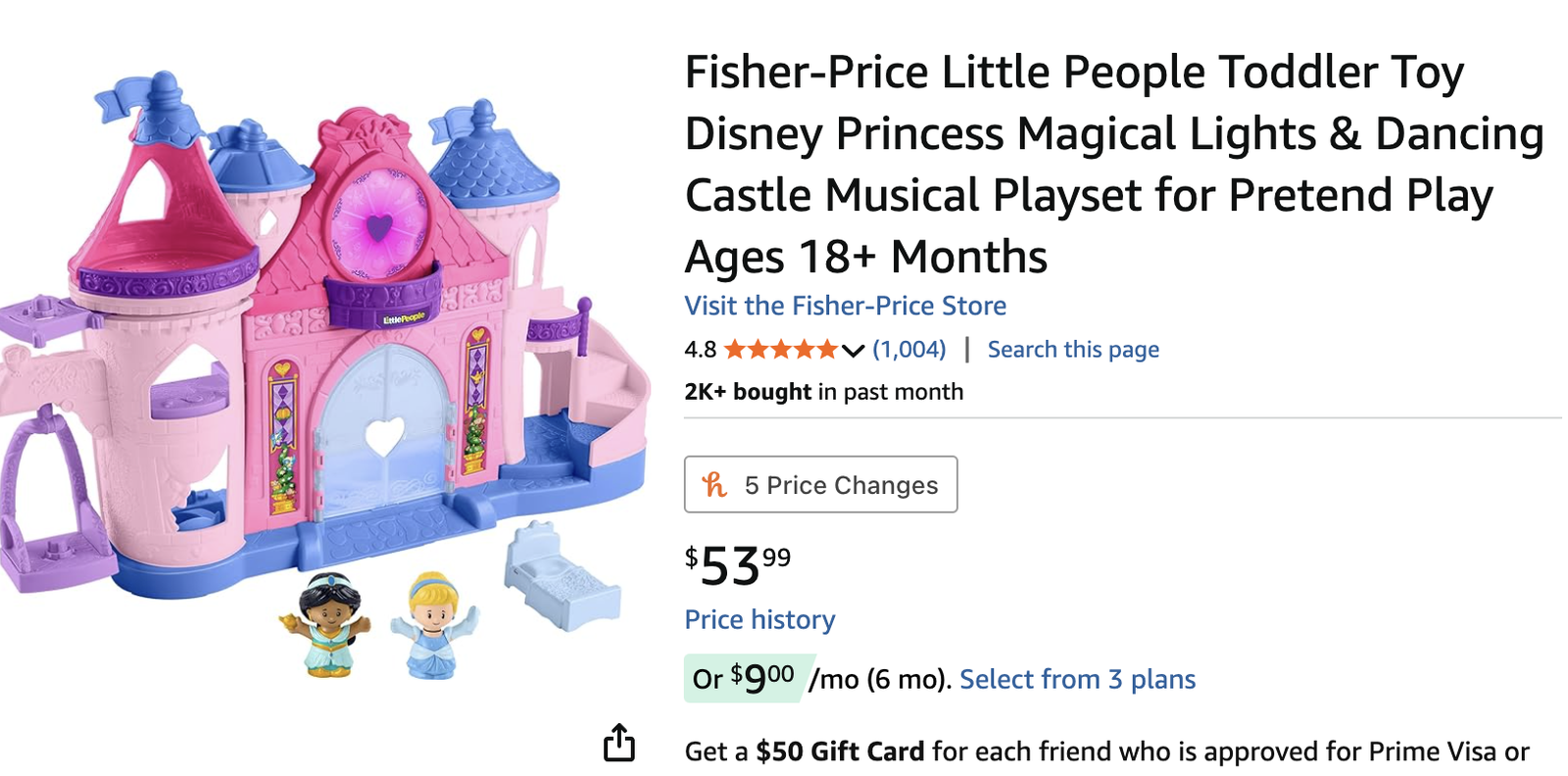 Multiple Levels: Multiple castle levels for creative play, including Cinderella’s swing and Jasmine’s magic carpet.