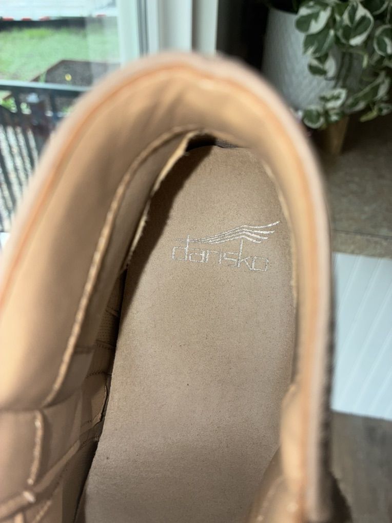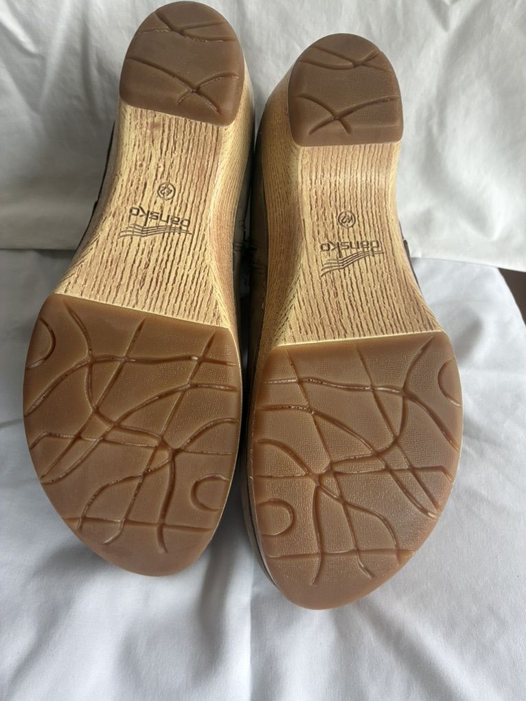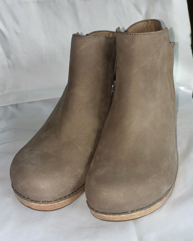 Dansko Taupe Nubuck Ankle Booties with Wood-Effect Heel EU Sz 42, US Sz 11-11.5