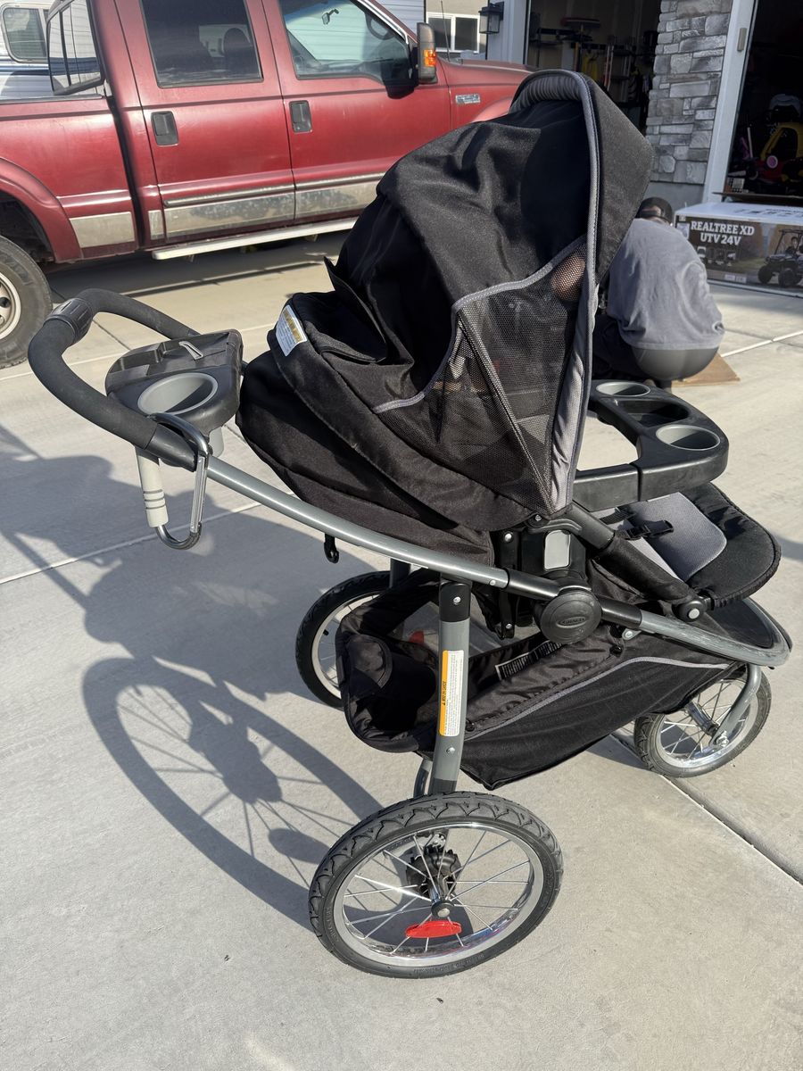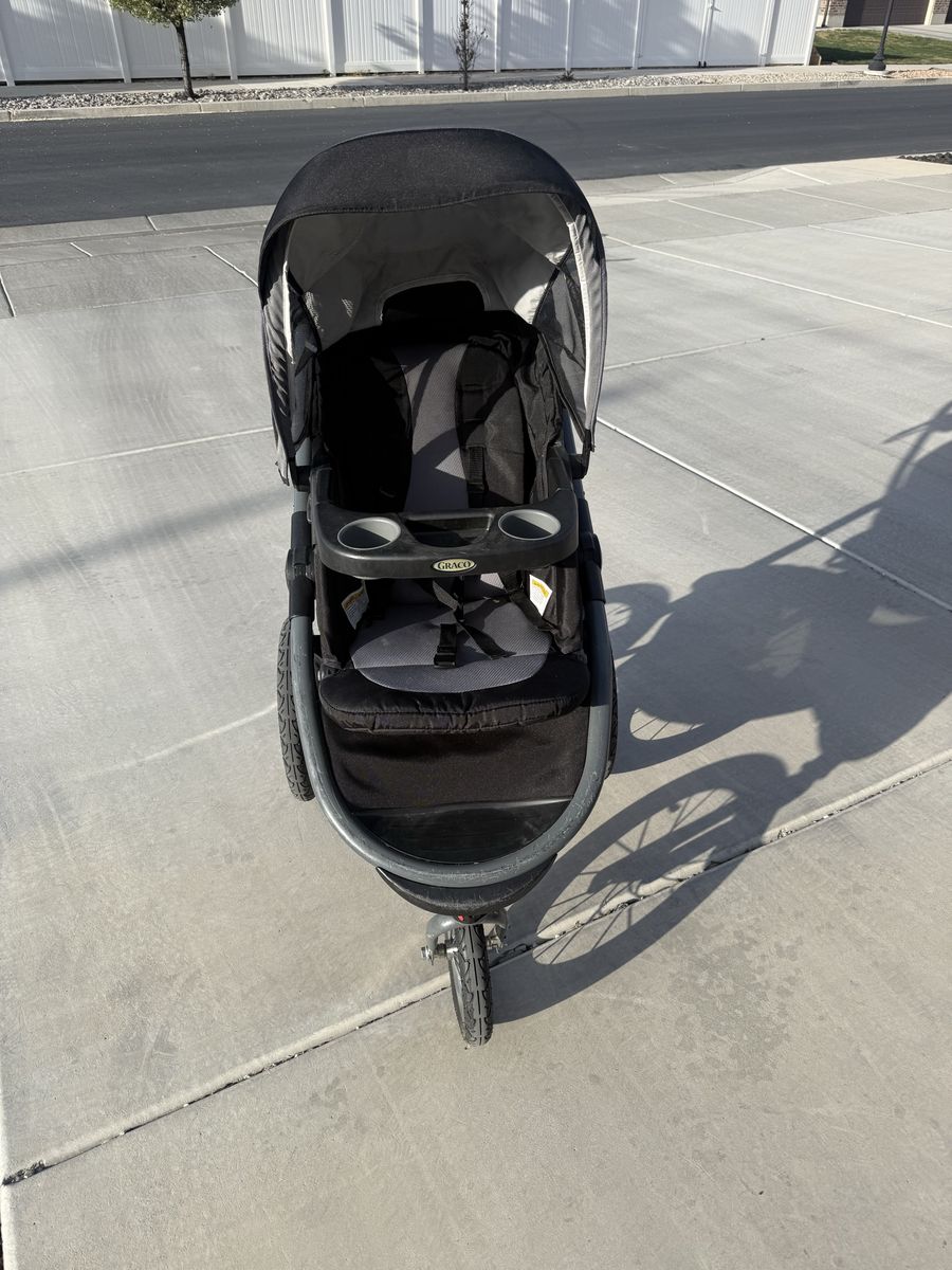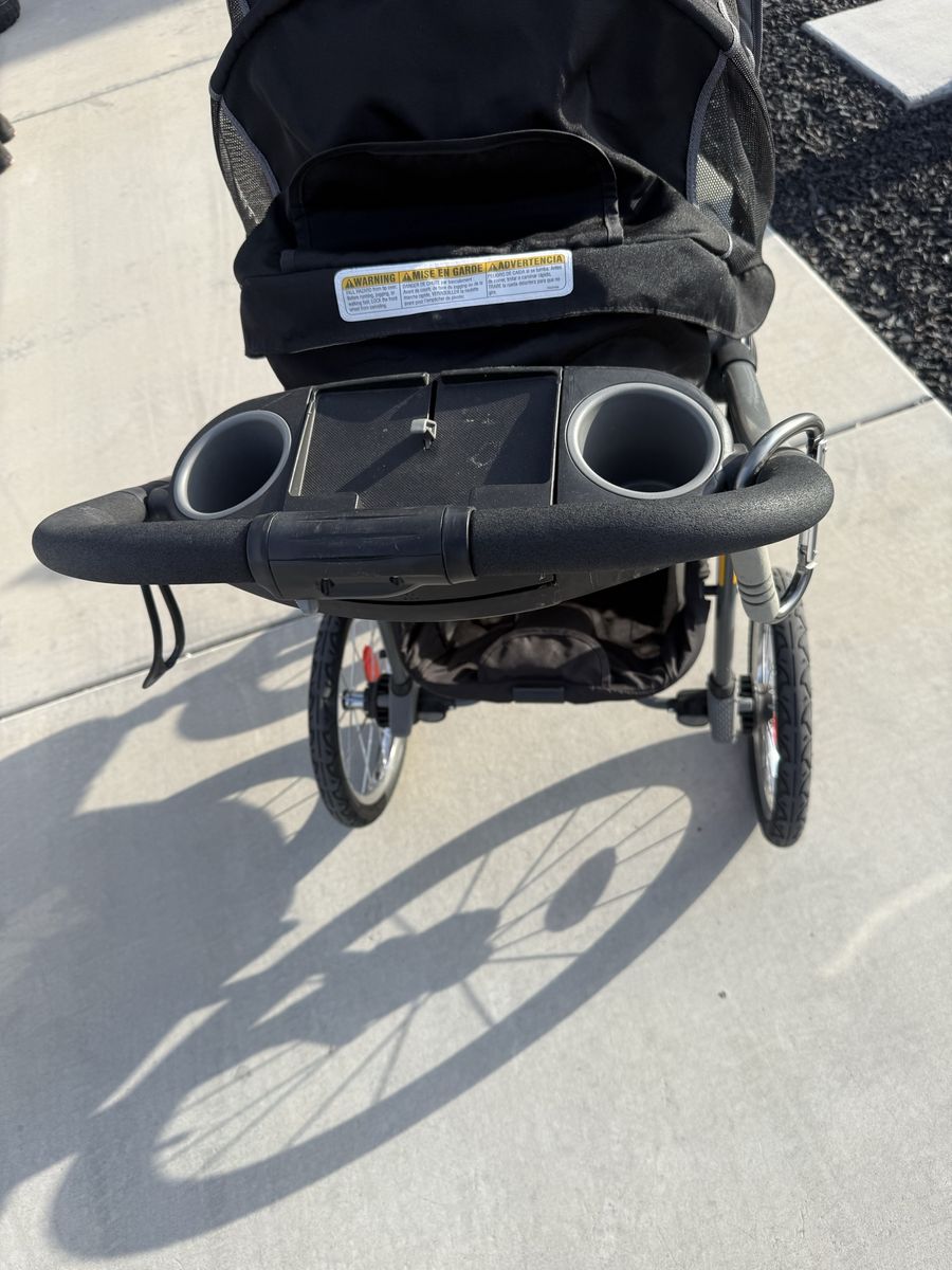 VenmoJogging stroller in great shape! Compatible with Graco car seats. Smooth ride with large wheels, adjustable canopy, cup holders, and a storage basket underneath. Super easy to push and perfect for walks, jogging, or everyday use.