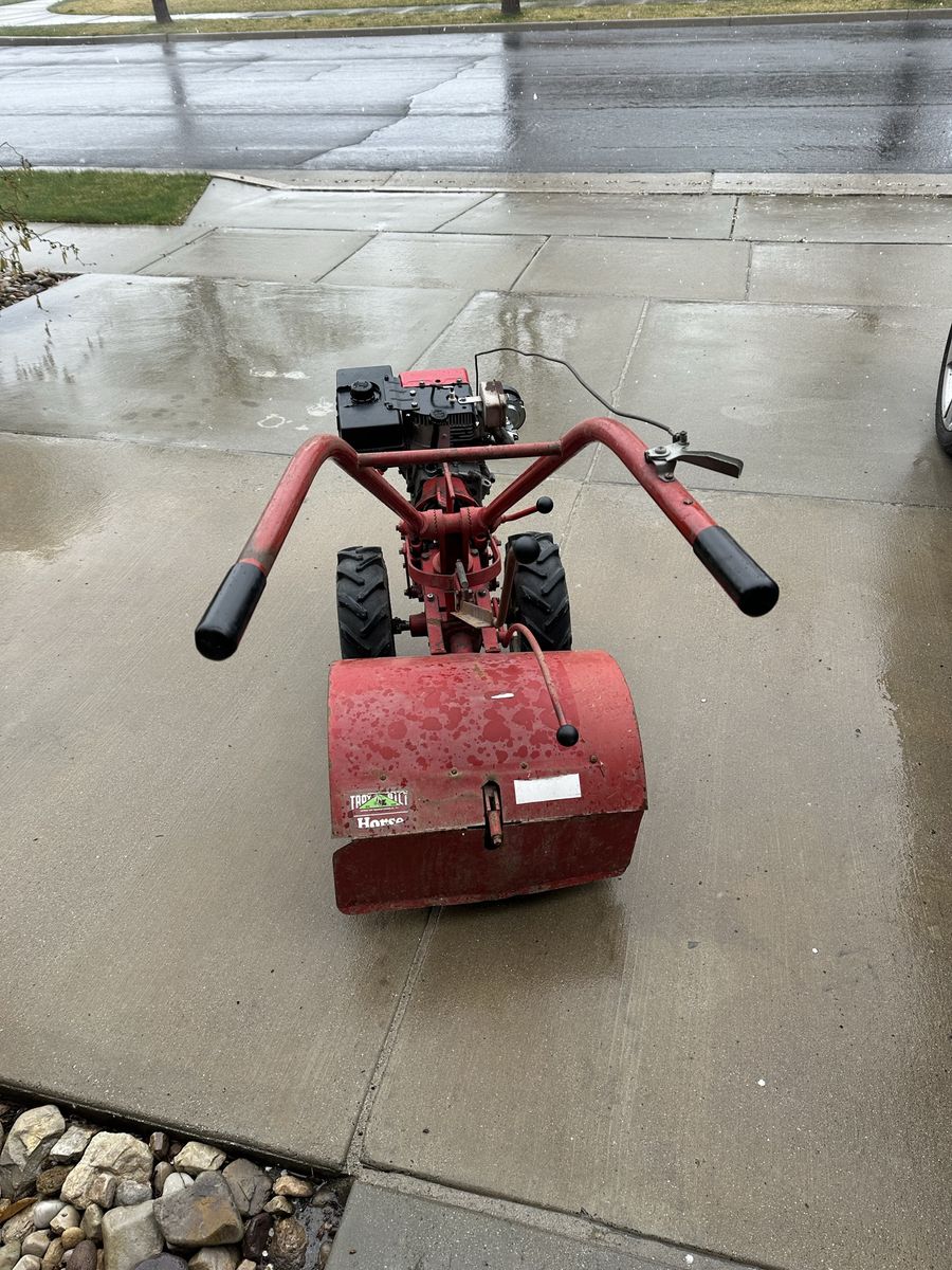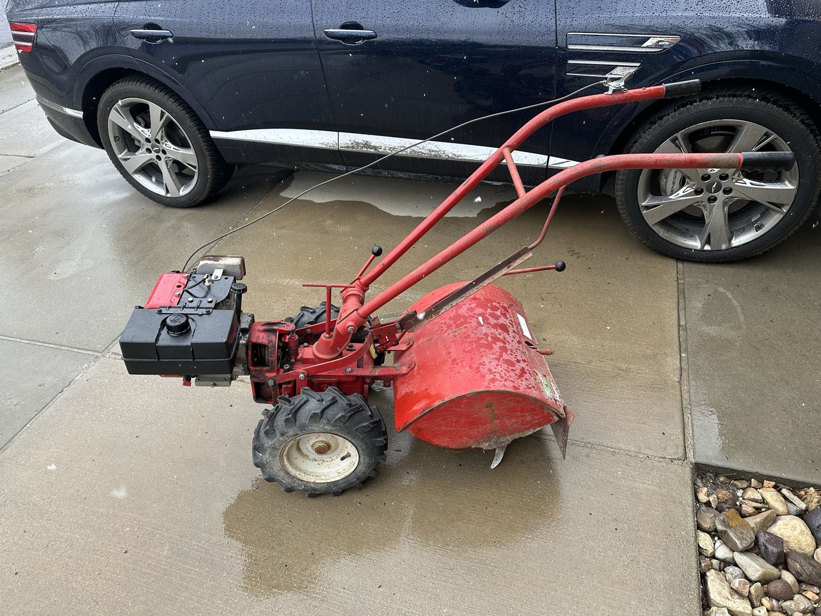 Troybilt horse tiller in pretty good shape. But the motor runs for a minute then dies. I have too many projects to deal with this one. Firm on the price.