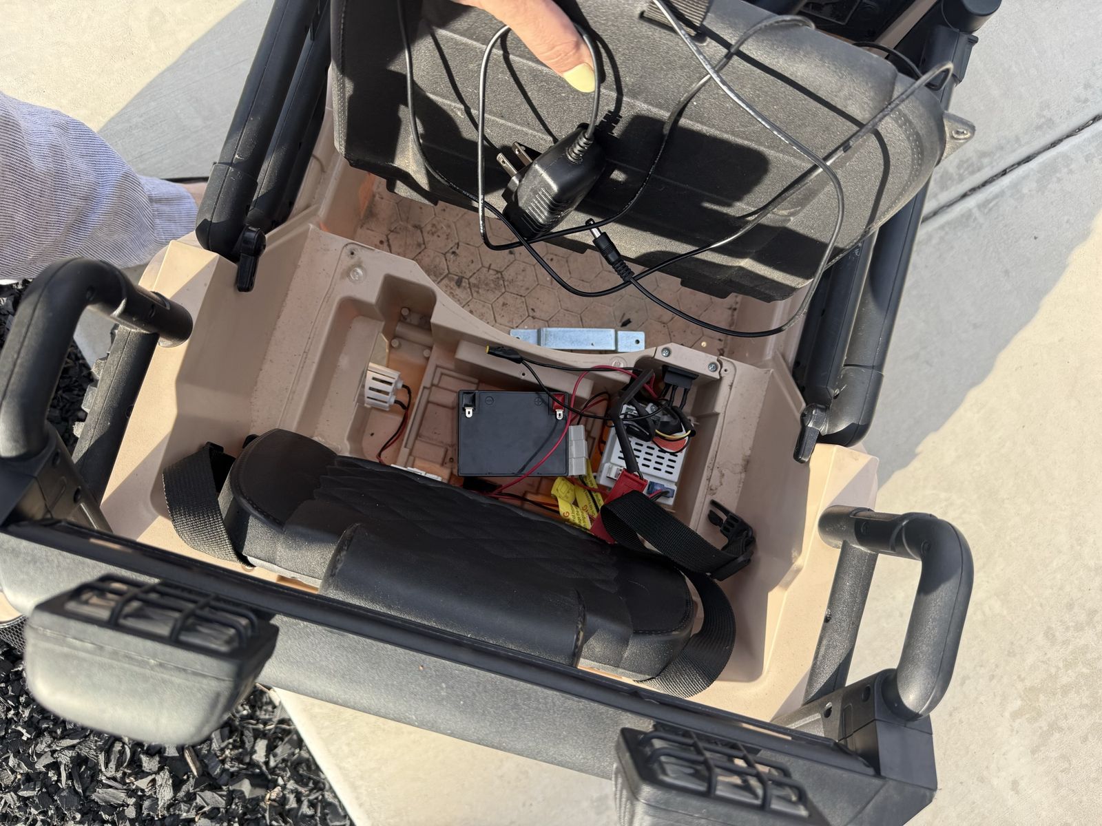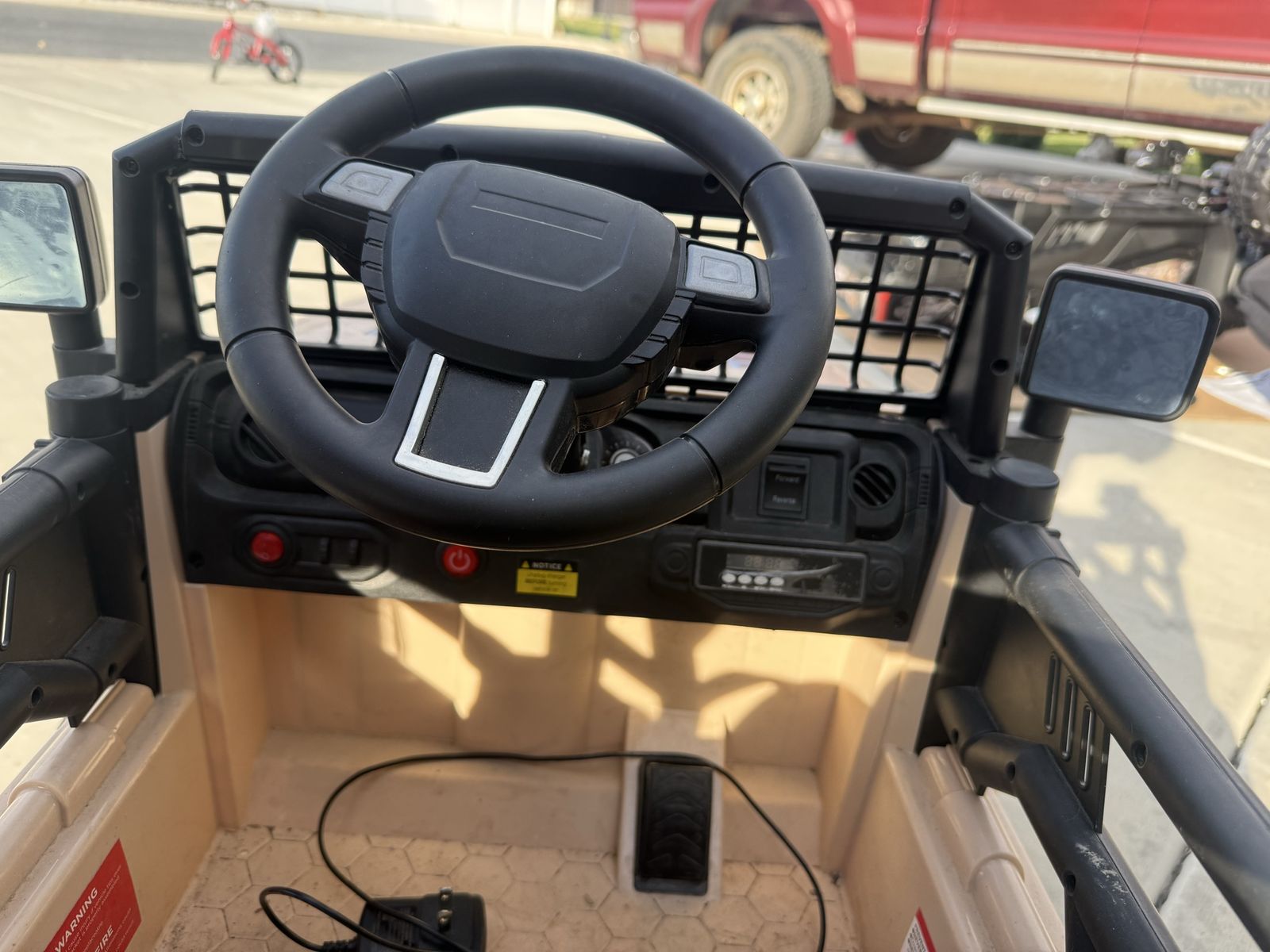 VenmoKids ride-on Jeep. It stopped working so we replaced the battery, but it still won’t run. Might be an easy fix for someone who knows these things, or good for parts. Bluetooth stereo and lights work great.