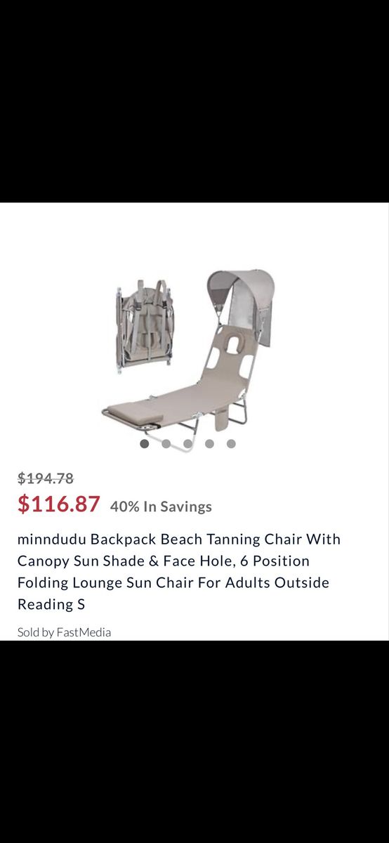 VenmoNew Backpack Beach Tanning Chair With Canopy Sun Shade & Face Hole, Opened it to take a picture 6 Reclining Position Folding Lounge Sun Chair For Adults Outside Reading or ETC