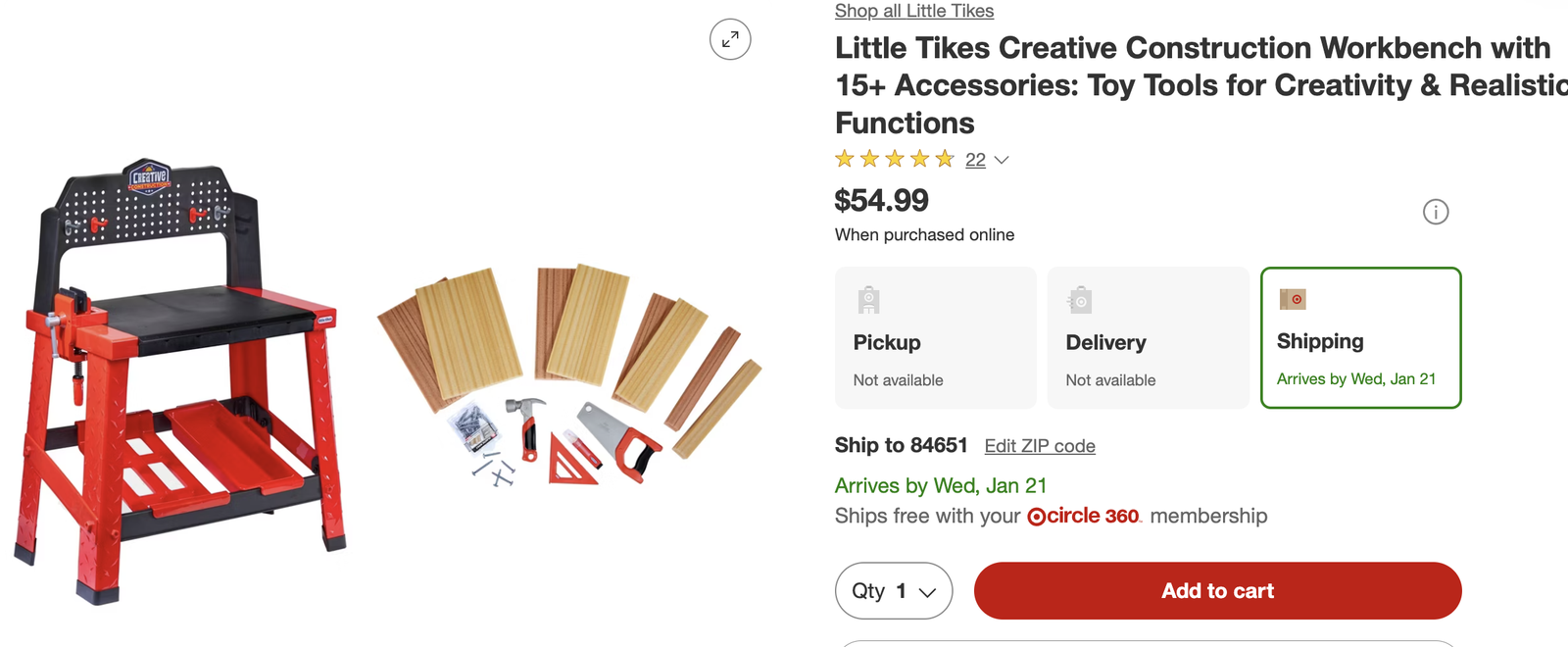 15+ REALISTIC ACCESSORIES. This construction role play set includes a workbench, hammer, rafter’s square, vice, wood saw, dry-erase carpenter’s pencil, 4 hooks, box of 30 nails, and foam wood boards in various sizes.