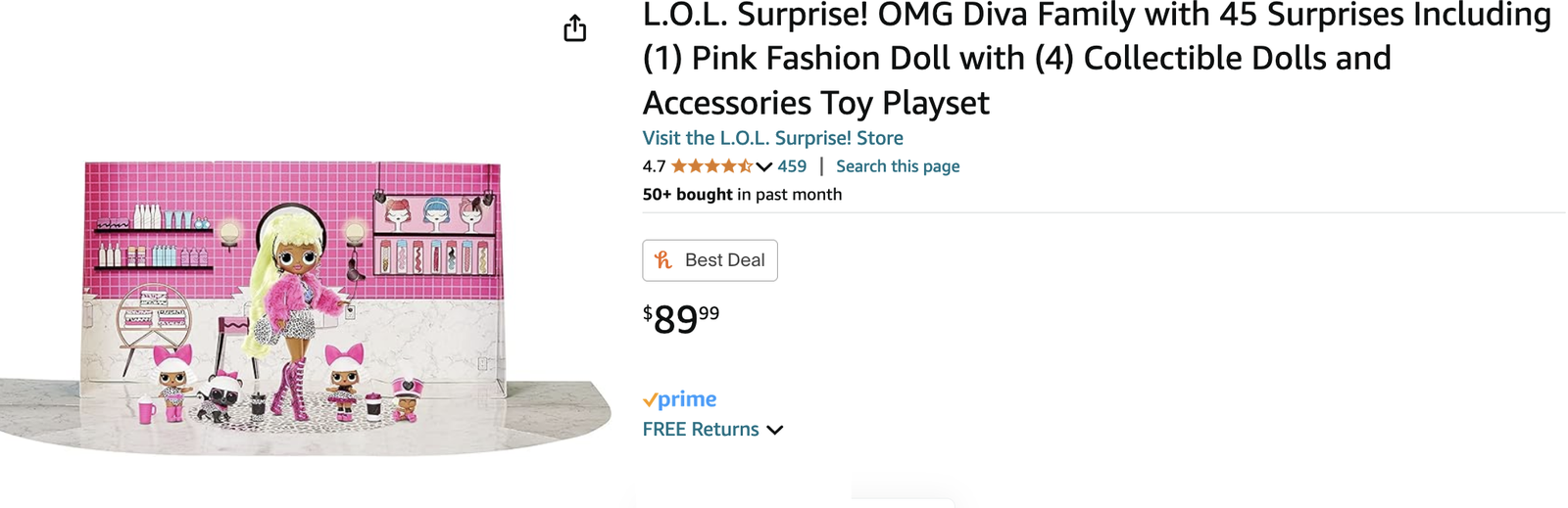UNBOX 45 SURPRISES including L.O.L. Surprise O.M.G. Lady Diva, Diva, the oh-so-extra glitter Diva, Lil Diva, and the family pet Diva Stripes.