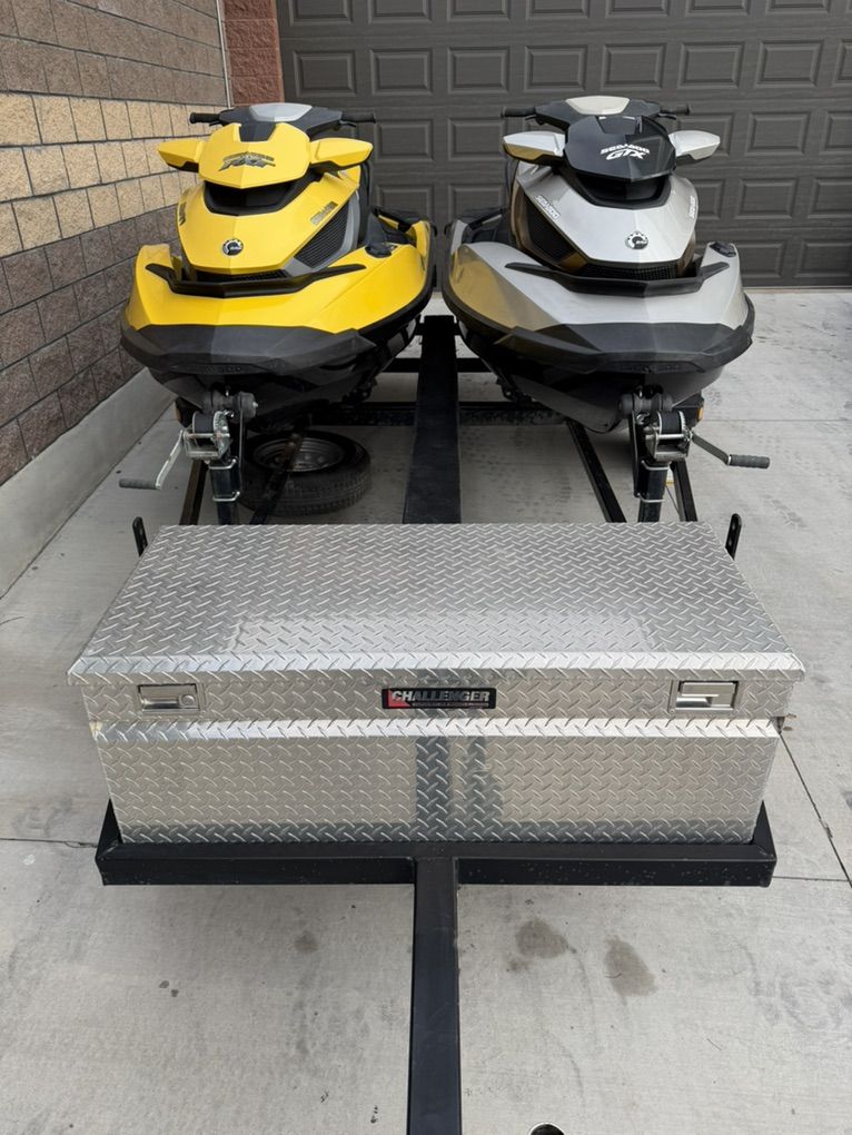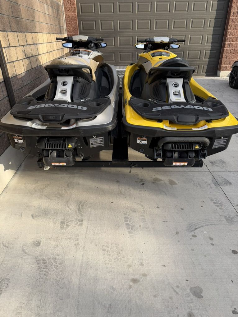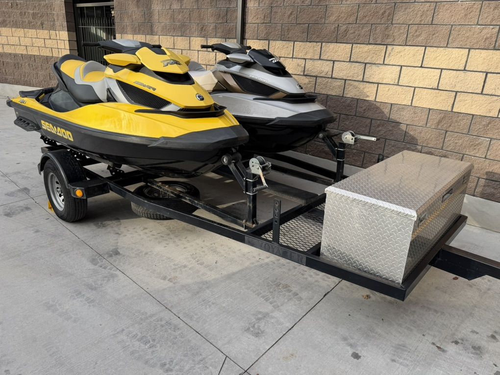 We have 2 very clean low hour 2009 supercharged SeaDoo’s with 2 place Voyager XL trailer for sale. They have been well taken care and aways serviced. The yellow RXT-X has 35 hours. The silver GTX limited has less than an hour on a new motor. They are very fast and nice machines, they are also very stable. They have all of the option: VTS control, Eco and sport mode, cruise control. Adjustable handlebars. Also have a fast key and adjustable learners key so you can choose what level power the machine gets. They have IBR, which is intelligent reversed, and break. The first is a 2009 SeaDoo RXT-X 255 IS. It has the rear reboreding step. The second machine is a 2009 SeaDoo GTX Limited IS 260. Both have the IS systems. IS stands for intelligent suspension, it is adjustable on the fly with the push of a button and it is super nice for cruising as the suspension takes most of the bumping away. They were both just looked over and had full services. They are three seaters, and can easily pull skiers, tubes, and wakeboarder. They have huge storage compartments up front, and large glove box’s. There is also has additional storage in the rear and speed ties on the GTX for easy docking. They will also come with OEM covers and some additional accessories stored in the front of the trailer. The trailer is a 2 place Voyager XL trailer. It comes with a spare tire mounted. And there’s a mounted storage box on the front . Asking $17,250 + SalesTax + Registration. NO DEALER FEE’S DL:692B Text or call anytime to make an appointment to see them. We take trade-ins