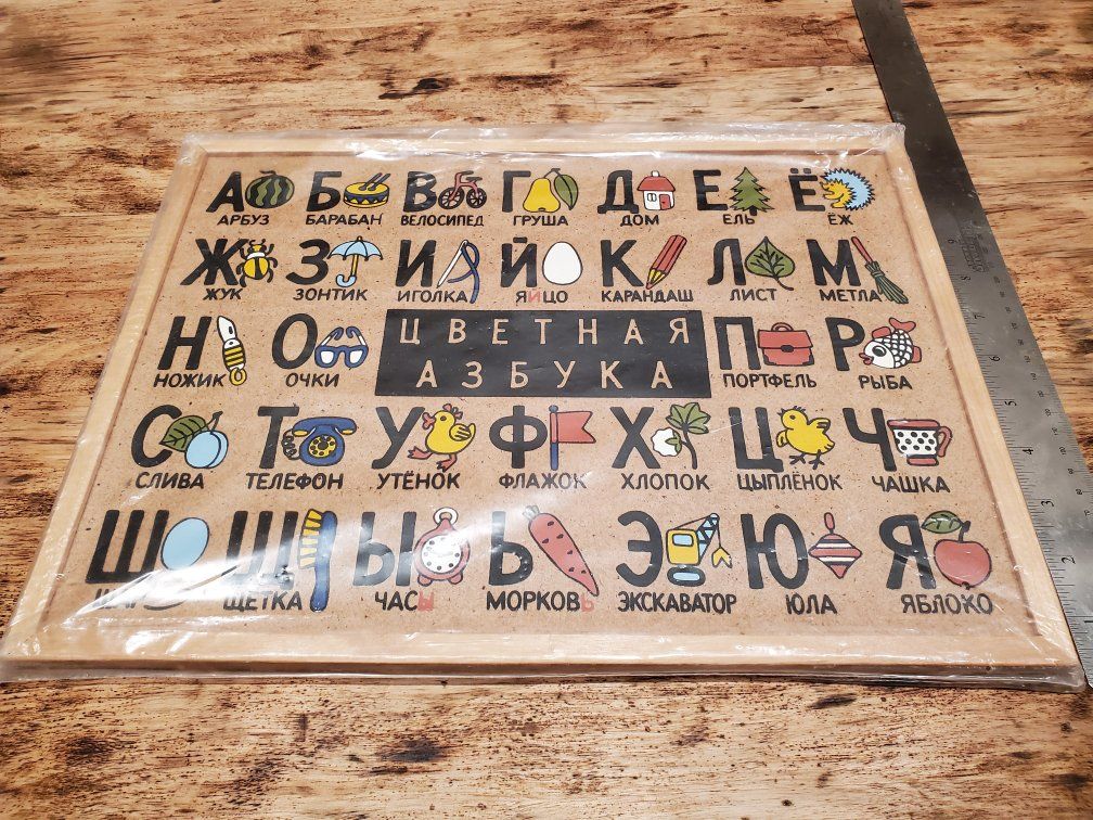 Can meet Ogden/SLC. Vintage from the 1990's, both purchased by my Mom and Dad in Russia. Beautiful velvet dress with intricate pattern. Porcelain Russian Doll. A wonderful display piece collectible with winter holiday charm and quality craftsmanship. Wood Framed Alphabet Chart. $15. For both Cash only.