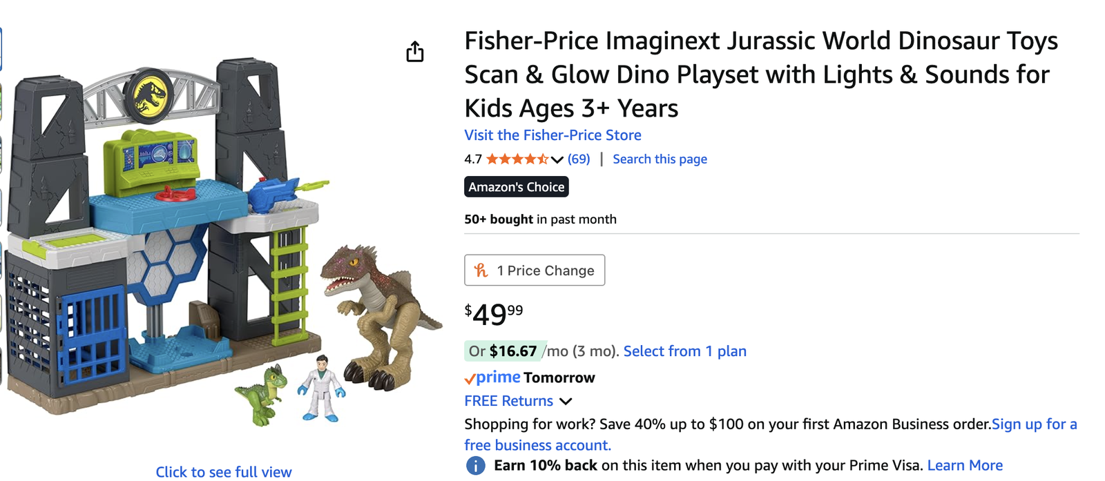 Inspired by the Jurassic World films, this laboratory playset has cool lights, sounds and dinosaur toys that glow as kids “scan” them!