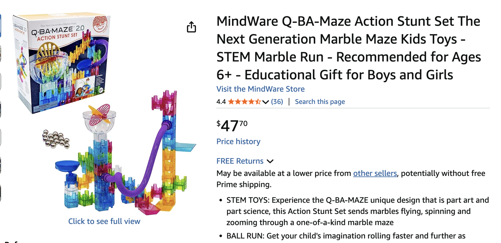 STEM TOYS: Experience the Q-BA-MAZE unique design that is part art and part science, this Action Stunt Set sends marbles flying, spinning and zooming through a one-of-a-kind marble maze