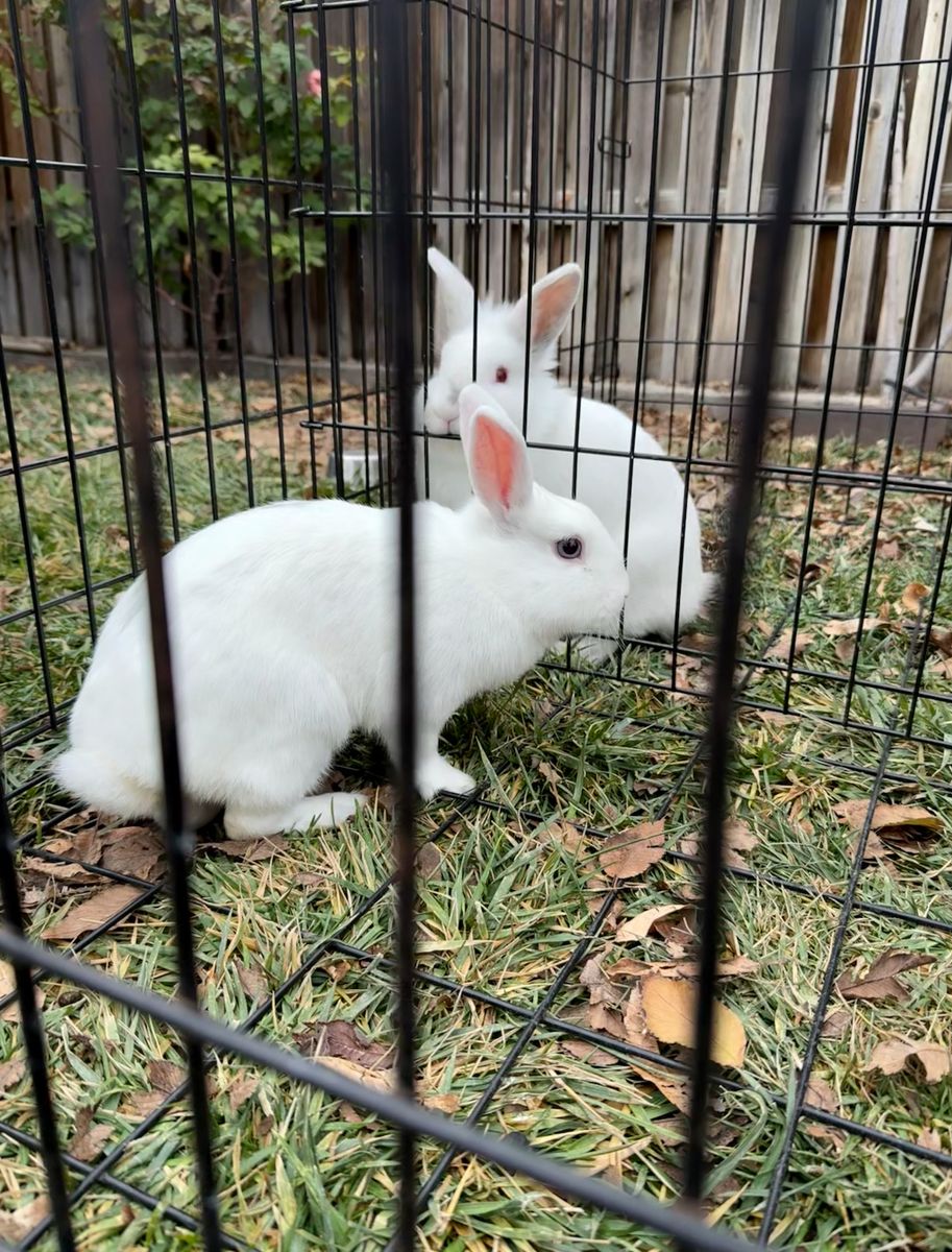 Looking to rehome our bunnies. Male - red eyes, Mr. Rubio Female - blue eyes, Sky They are less than a year old.