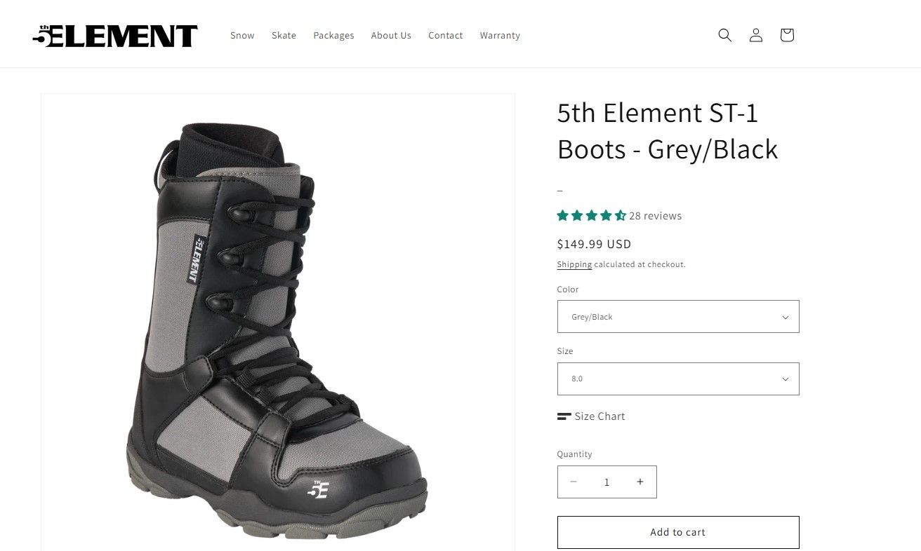 ApplePay5th Element ST-1 Snowboard Boots - Grey/Black - Men's Size 8