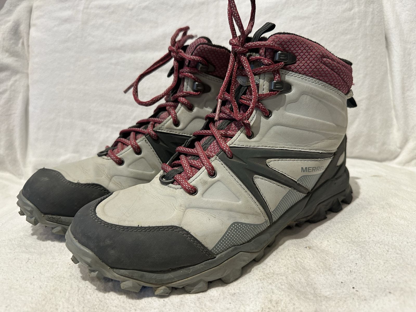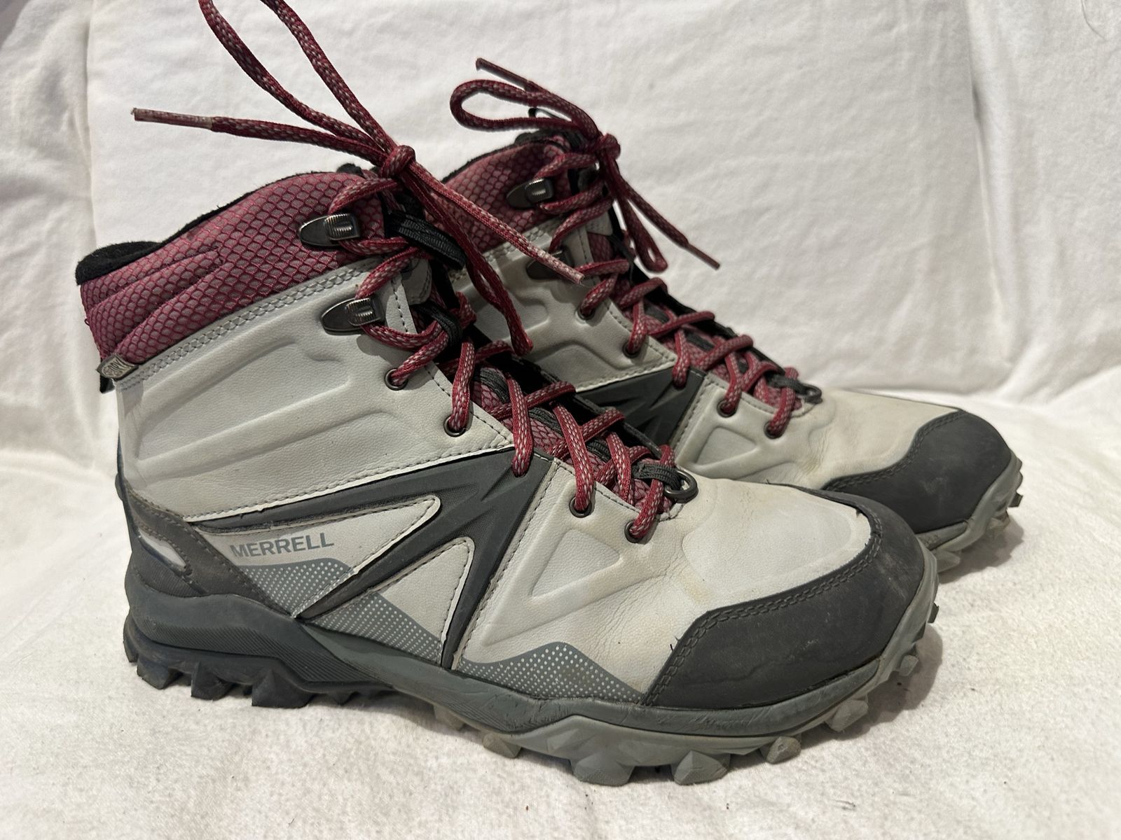Merrell women’s size 10 or EU 41 waterproof gray/maroon trim leather and textile mid hiking boots. These are in excellent condition, see photos for details. I take cash or Venmo, but cash is preferred. Text is best. 801-201-4446. Check out my other ads for additional sizes and styles.