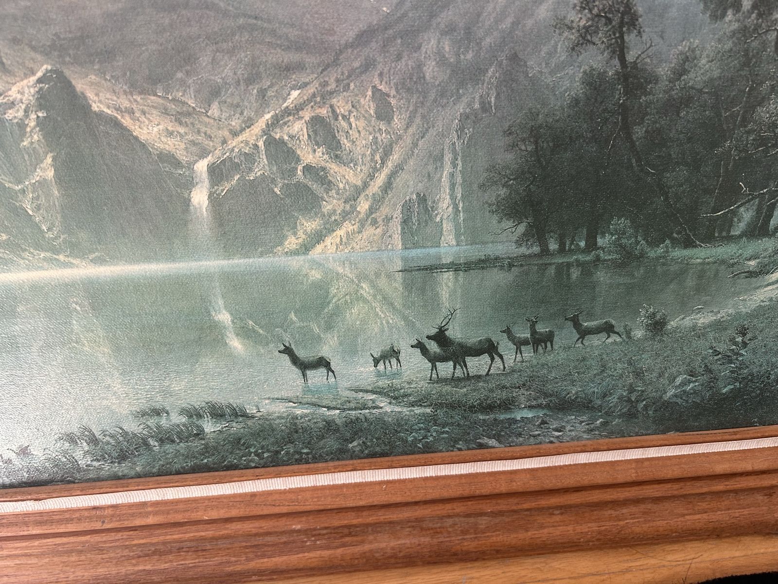 VenmoAlbert Bierstadt's famous 1868 painting, "Among the Sierra Nevada, California" Print measures 44x29 including frame, no signature, cash or Venmo only.