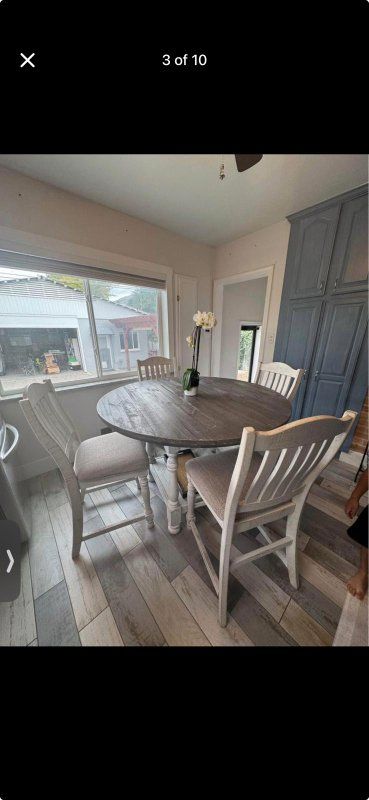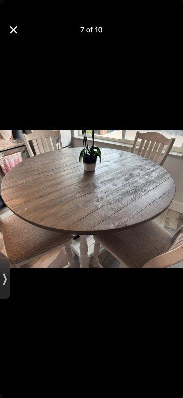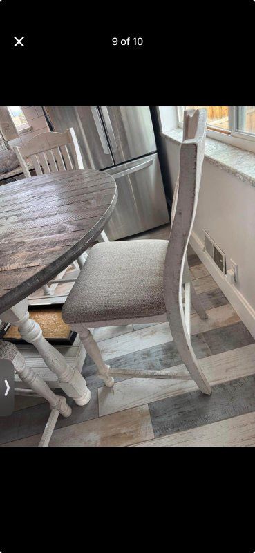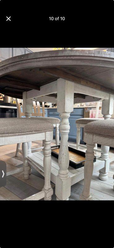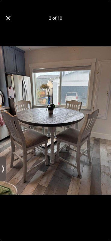 We but this from Ashley Furniture and it's in excellent condition. we are selling this because we moved to a new place and it's not the best fit for our kitchen.