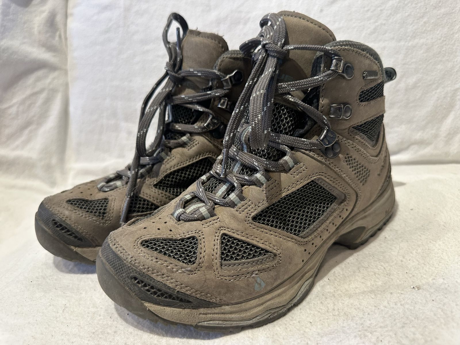Vasque women’s size 8W gray leather and mesh goretex mid hiking boots. These are in good condition, see photos for details. I take cash for Venmo, but cash is preferred. Text is best. 801-201-4446. Check out my other ads for additional sizes and styles.