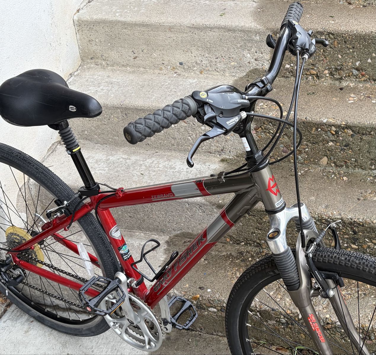 ApplePayGary Fisher Zebrano Hybrid/ Fitness Bike 24spd (3x8) Shimano gears Shimano gearshifters 15” Sm. Aluminum lite frame Front suspension Upright adjustable handlebars QR aluminum wheels QR adjustable seat Waterbottle holder WTB All terrain 700c x 45 tires