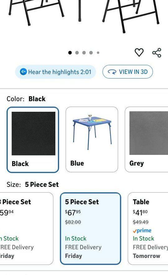 VenmoBRAND NEW Easy Folding Card Table and 4 matching folding chairs with safety locks. Will only hold over 1 hour w/Venmo deposit of 1/2 down minimum (sorry to many people don't show up)