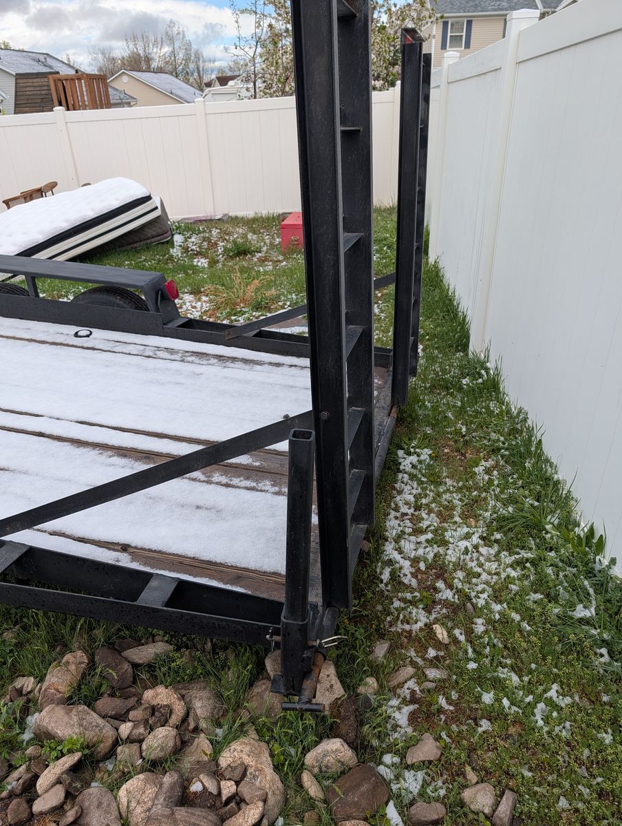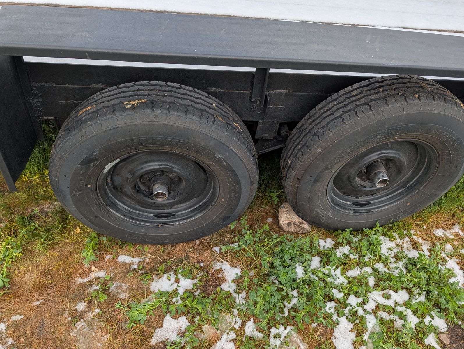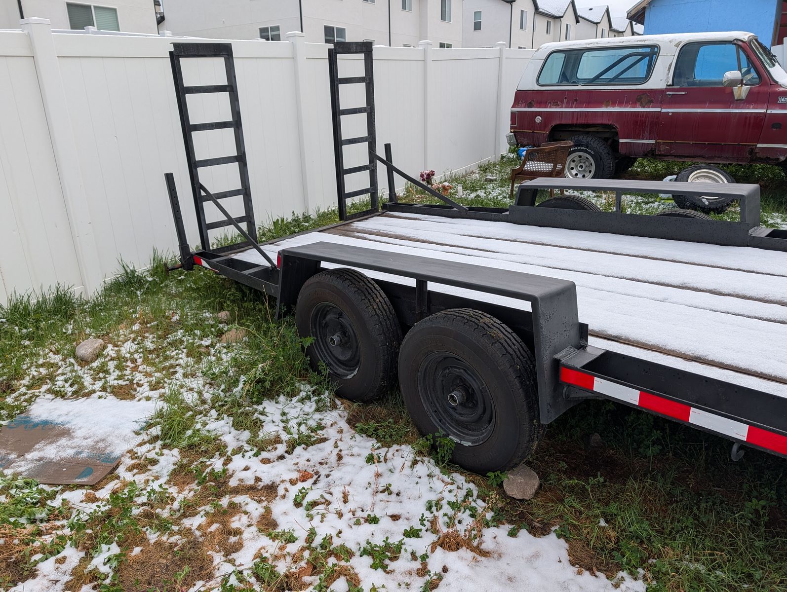 For sale trailer 18X7 with ramps this trailer is from the 2000's good tires and all lights work comes with a spare tire both axles have electric brakes contact Jose @ 801 654 22O6 cash only, no trades no scammers thanks for looking at this ad.