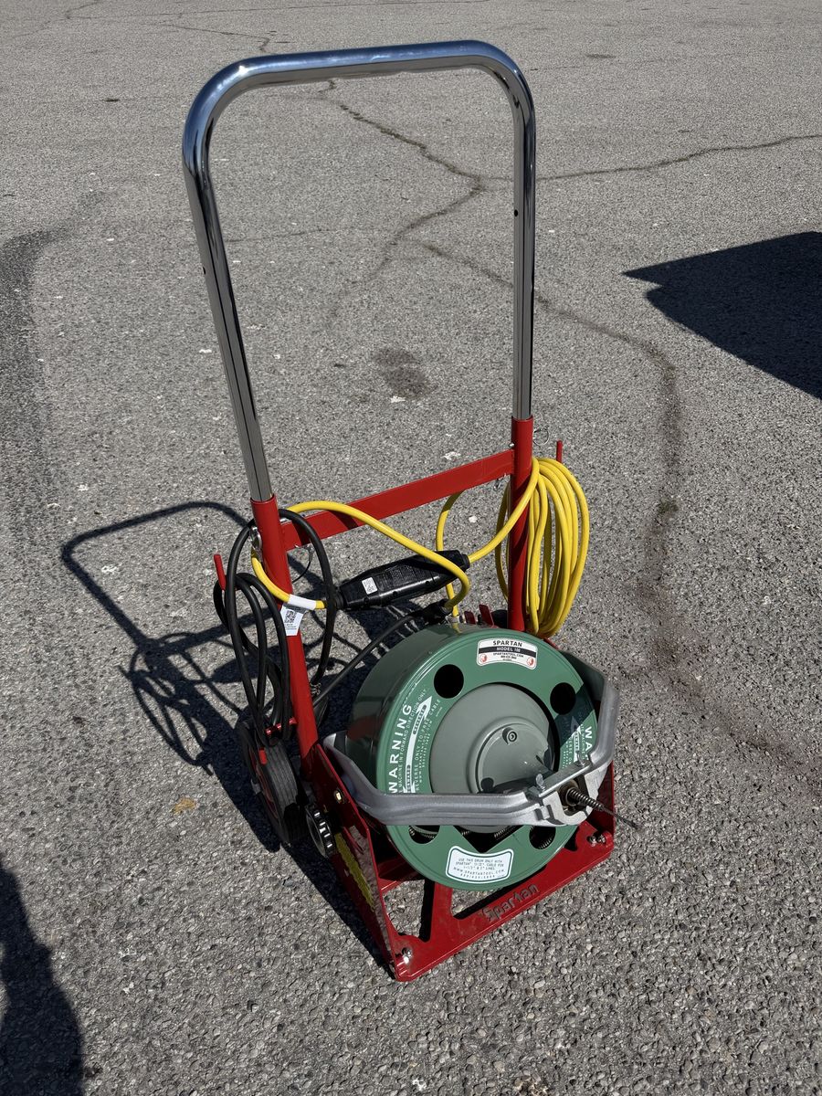 This is a solid, heavier-duty unit—great for kitchen sinks, floor drains, longer runs, and tougher clogs. Built a lot stronger than the smaller handheld machines, and on wheels so it’s still easy to move!