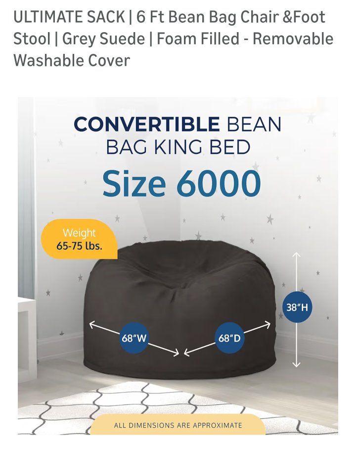 Venmo6 ft Grey suede, foam filled, washable cover. Gently used and in great condition. comes with a foot rest