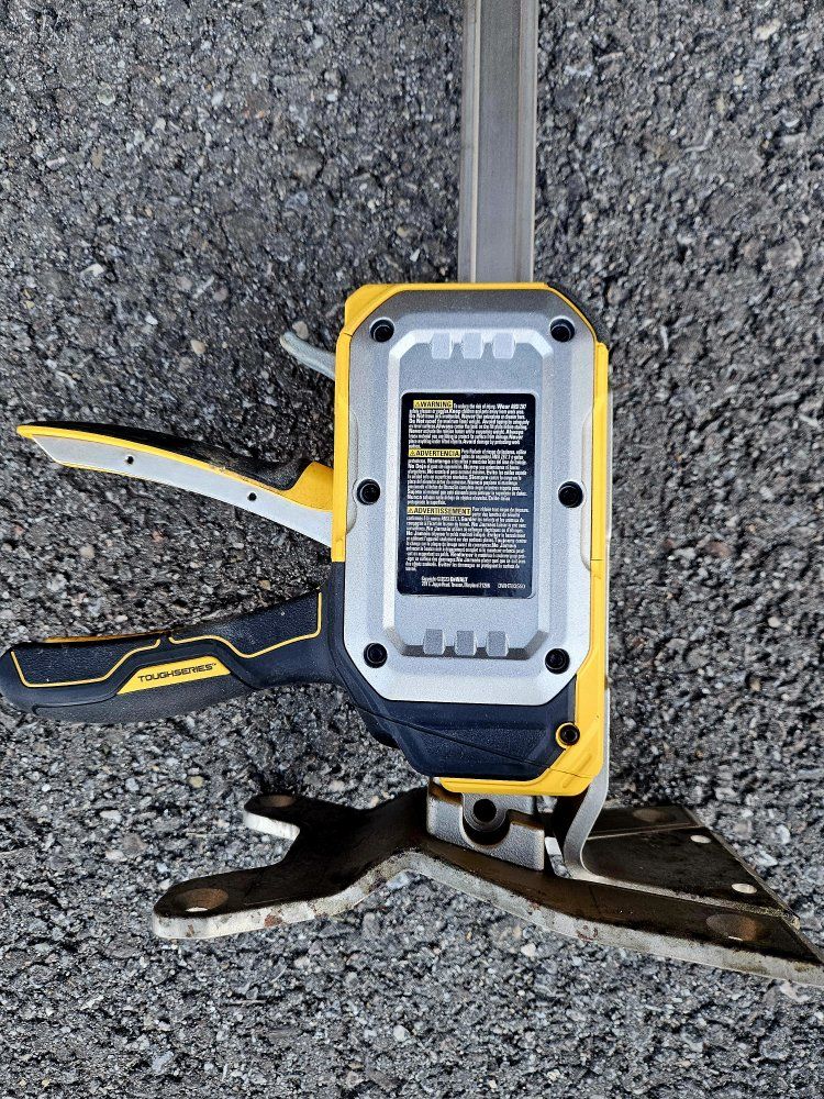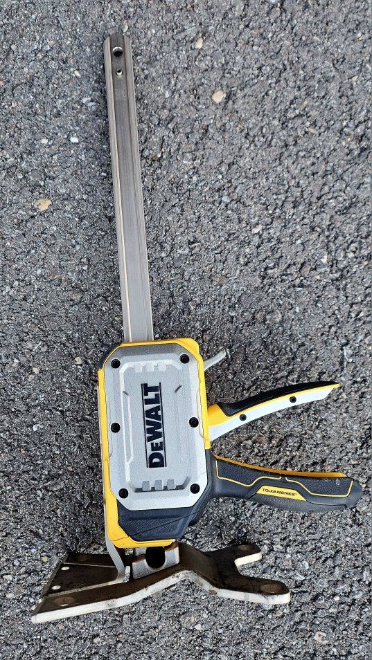 Maximize your efficiency on the job site with this DeWALT TOUGHSERIES™ Deck Board Straightener. This heavy-duty tool is specifically engineered to pull or push warped boards into place, ensuring perfectly straight lines and consistent spacing for your decking projects. Built with the durability DeWALT is known for, it allows for one-handed operation so you can fasten boards with your free hand. Key Features: High Clamping Force: Easily straightens stubborn, bowed deck boards (both natural wood and composite). One-Handed Operation: The trigger-grip mechanism provides easy ratcheting, letting you work faster and more accurately. Heavy-Duty Construction: Part of the TOUGHSERIES line, featuring a reinforced design to withstand rigorous job site use. Versatile Fit: The joist-grip base is designed to fit standard joists securely without slipping. Condition: This unit is in great shape with minor cosmetic wear from light use. It is fully functional and ready to go to work. Specifications: Brand: DeWALT Series: TOUGHSERIES™ Model: DWHT83185 (Board Jack)