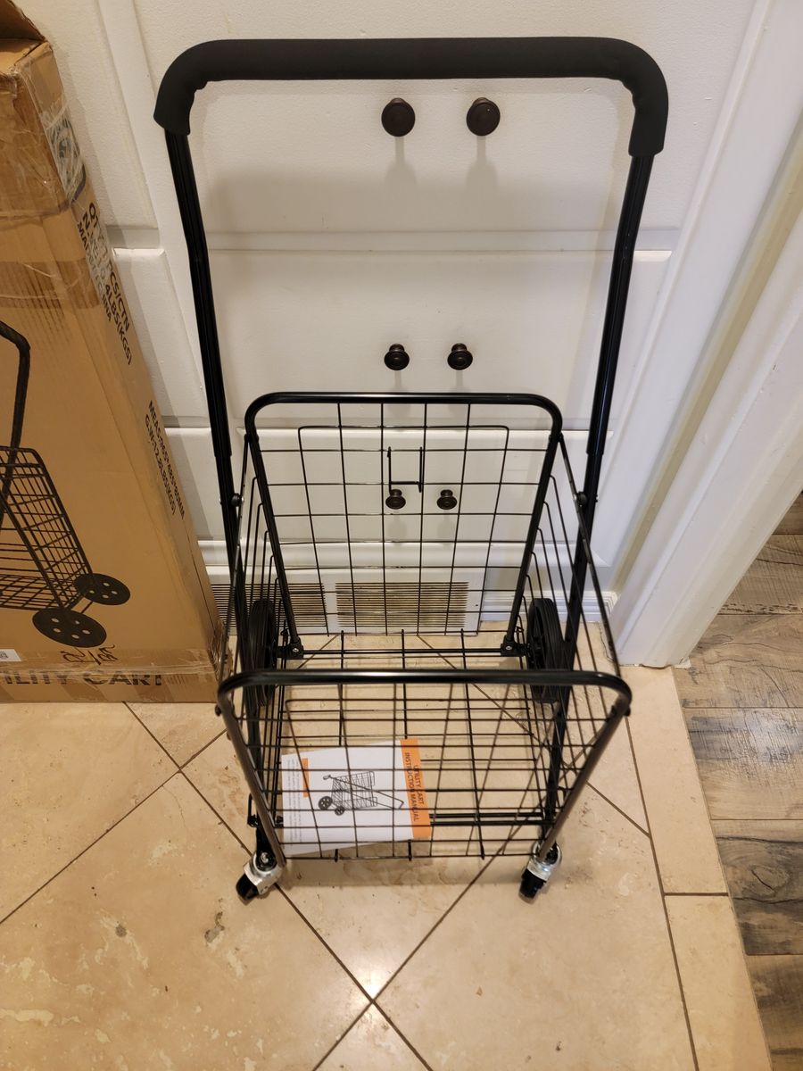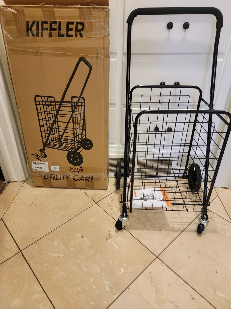 New Assembled Kiffler Grocery Shopping Cart with 360° Rolling Swivel Wheels Utility Cart Easily Collapsible Cart Extended Foam Cover, Trolley for Laundry,Groceries,Travel Black (Medium).