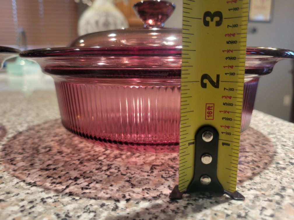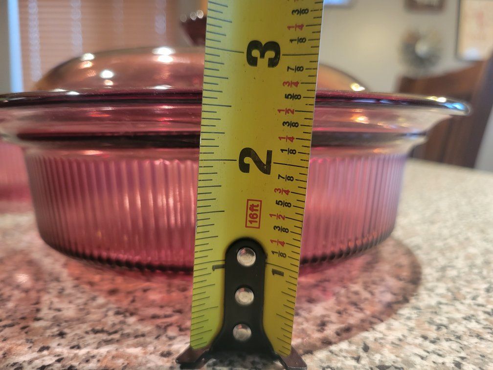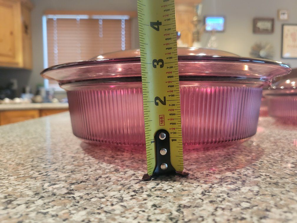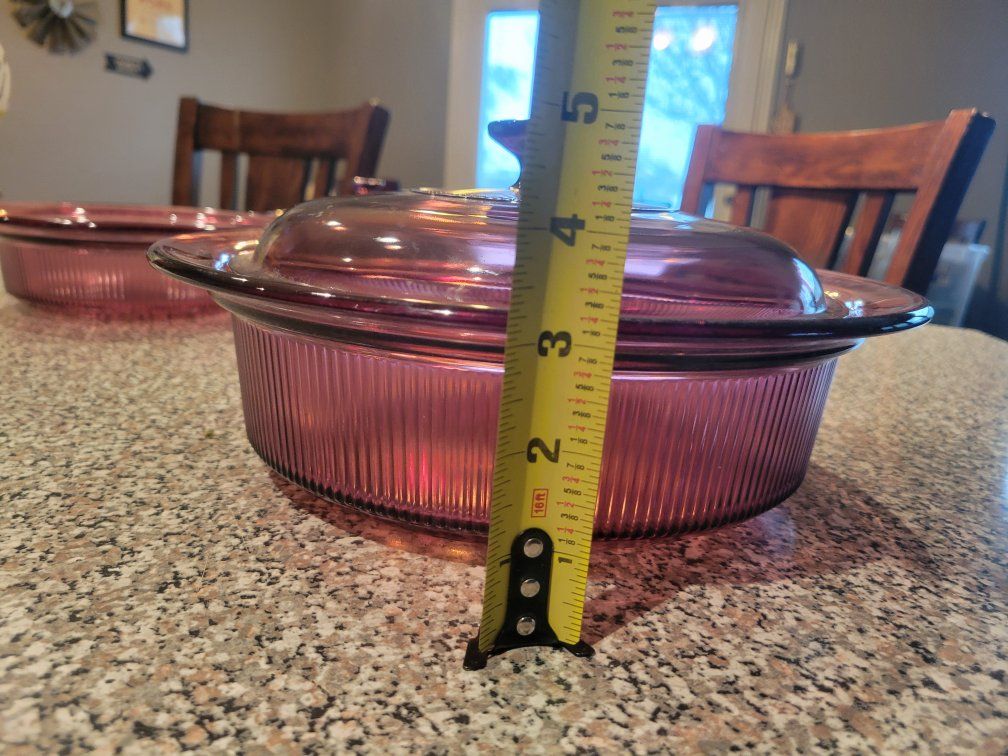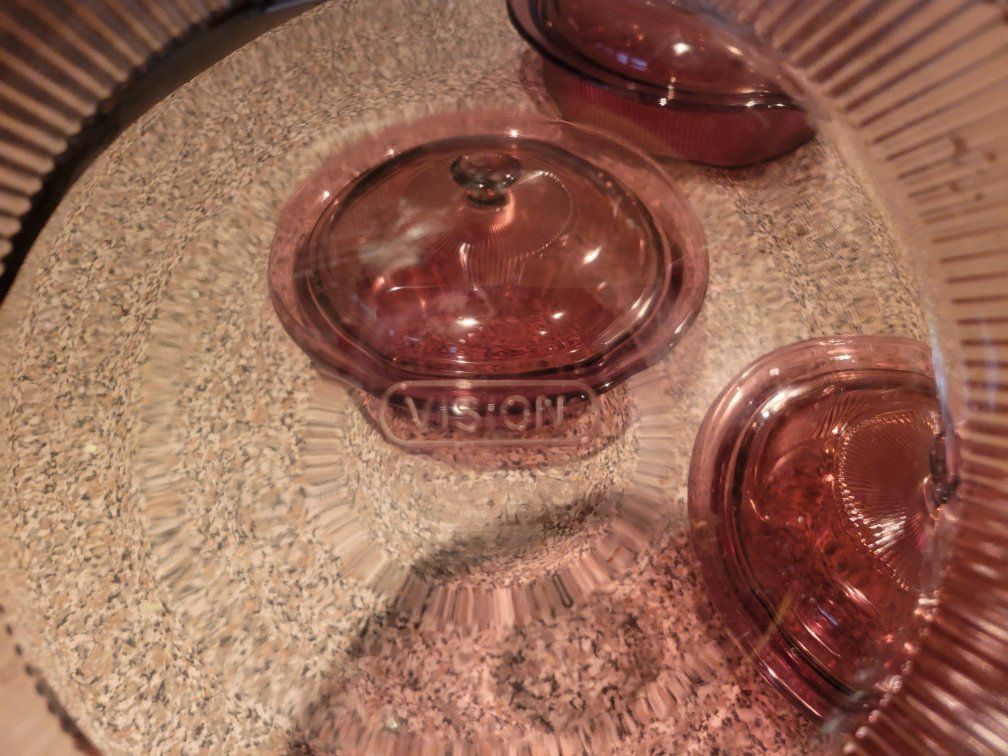 Vintage Pyrex Cranberry Vision Covered Casserole Set Ribbed Glass Dishes