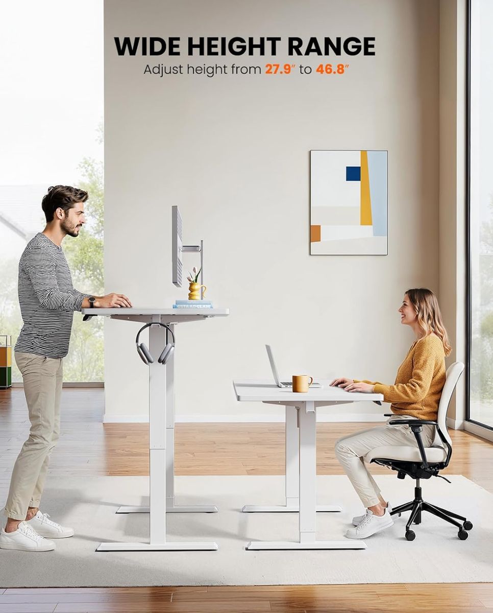 VenmoNEW ErGear Electric Standing Desk, 55 x 28 inch Height Adjustable Sit Stand Up Desk, Computer Home Office Desk with 4 Memory Height Buttons, Two Pieces Desktop, White, EGESD112W