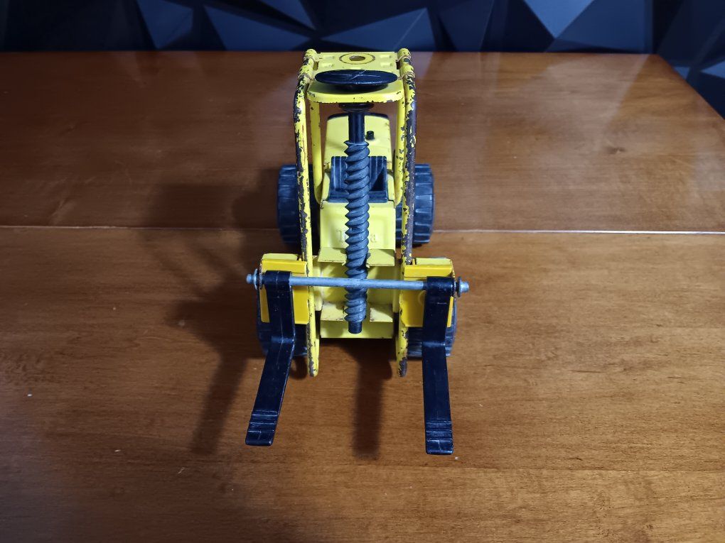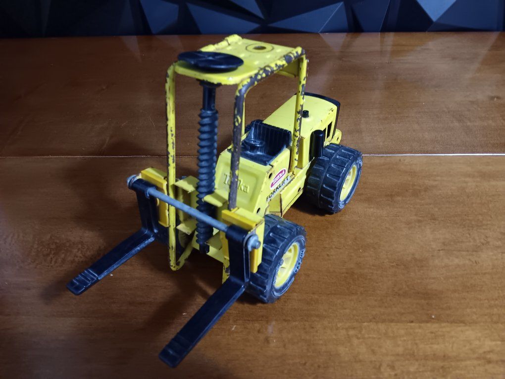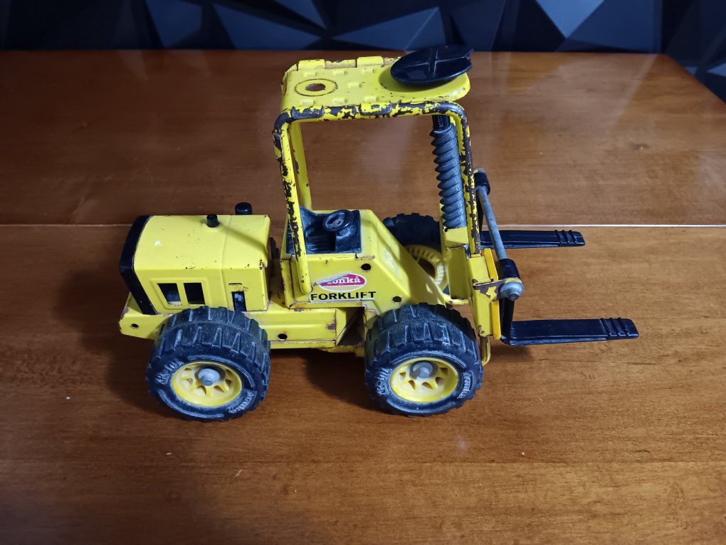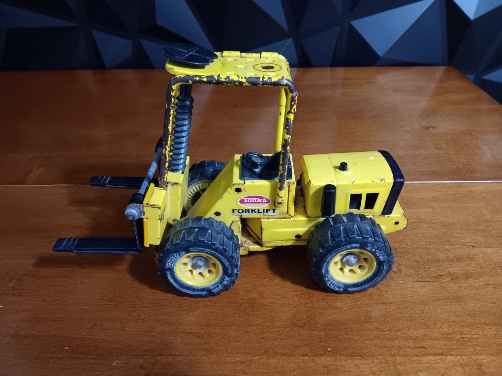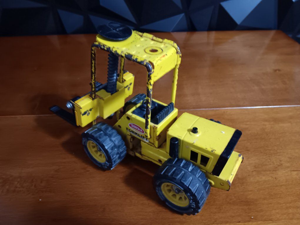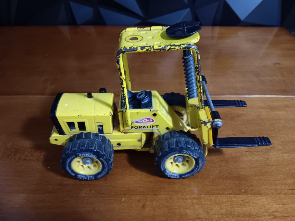 Vintage Tonka Truck 52900 Pressed Steel Metal Toy Forklift XR-101, 1970’s Vintage pressed steel Tonka forklift toy from the 1970s, specifically model #52900 or XR-101. It features yellow painted metal construction, black plastic forks, and heavy-duty. wheels. inf 702 3558824