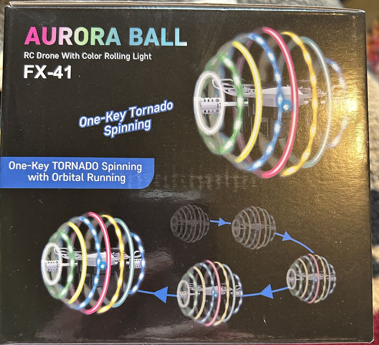 Aurora Ball FX-41 RC Drone with color rolling light. One-key tornado spinning with orbital running.