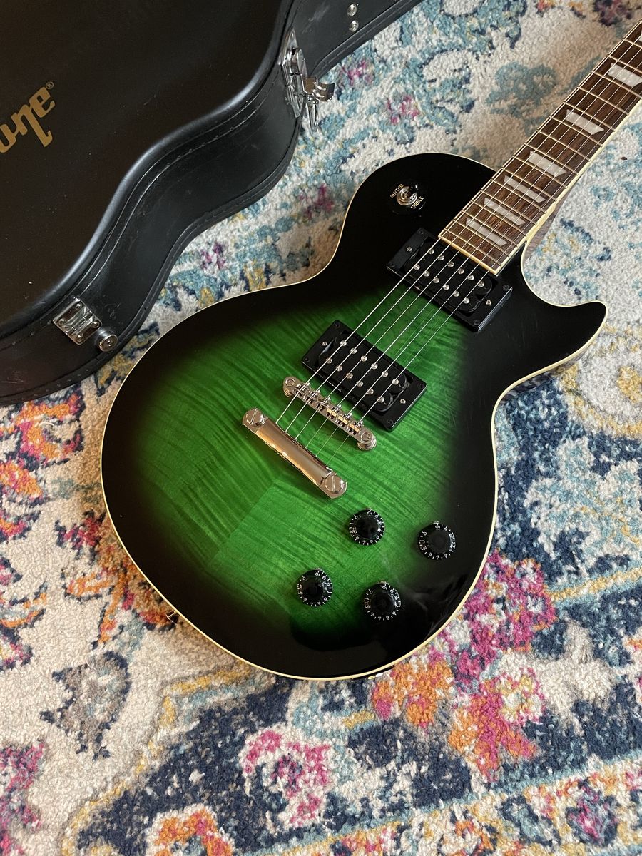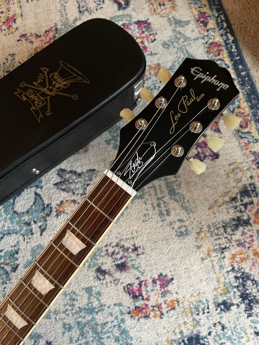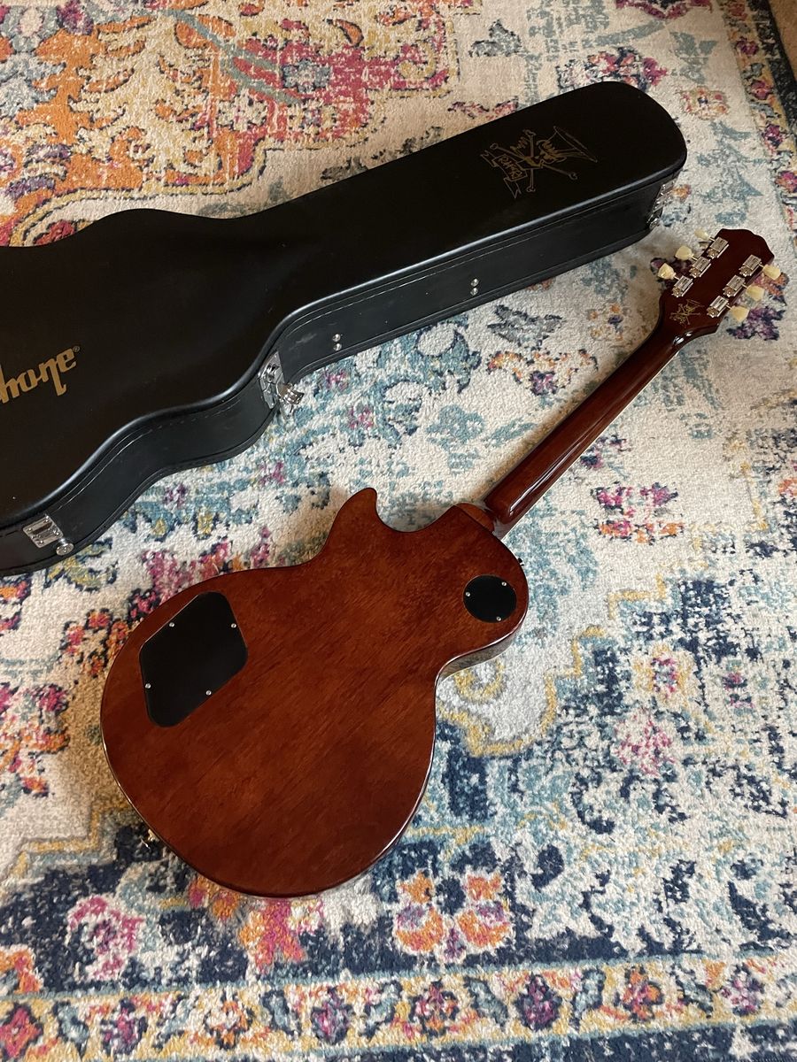 Awesome guitar Very cool flame top on this one Light weight for a Les Paul Professionally restrung and set up by me Plays great and looks killer Comes with Slash Hardcase