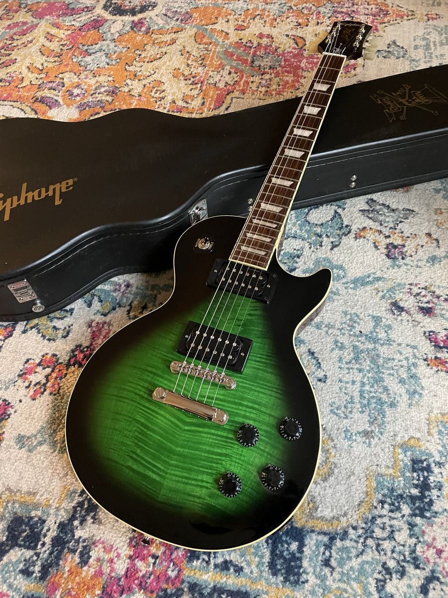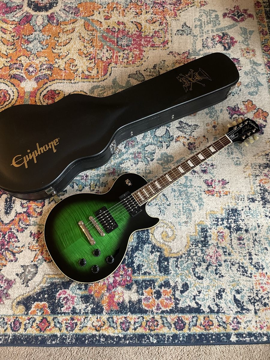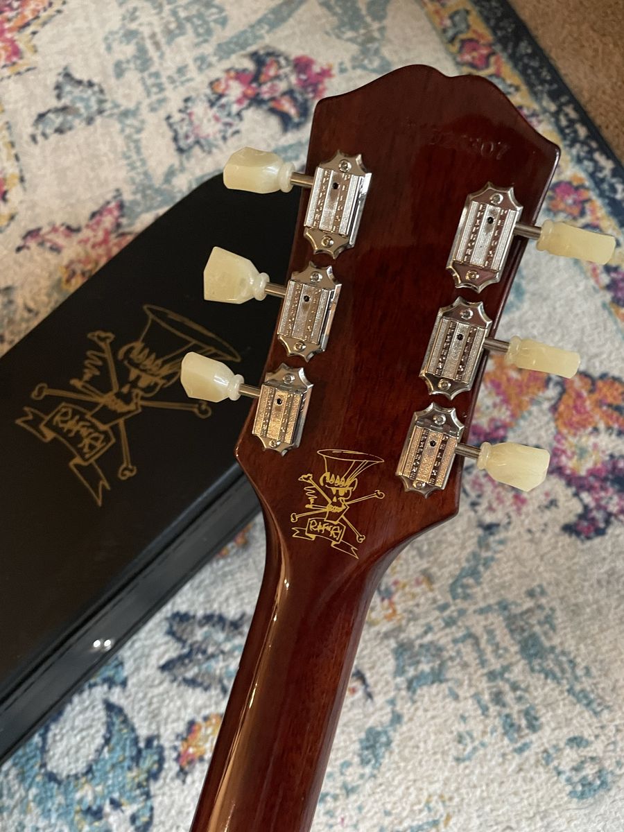 Awesome guitar Very cool flame top on this one Light weight for a Les Paul Professionally restrung and set up by me Plays great and looks killer Comes with Slash Hardcase