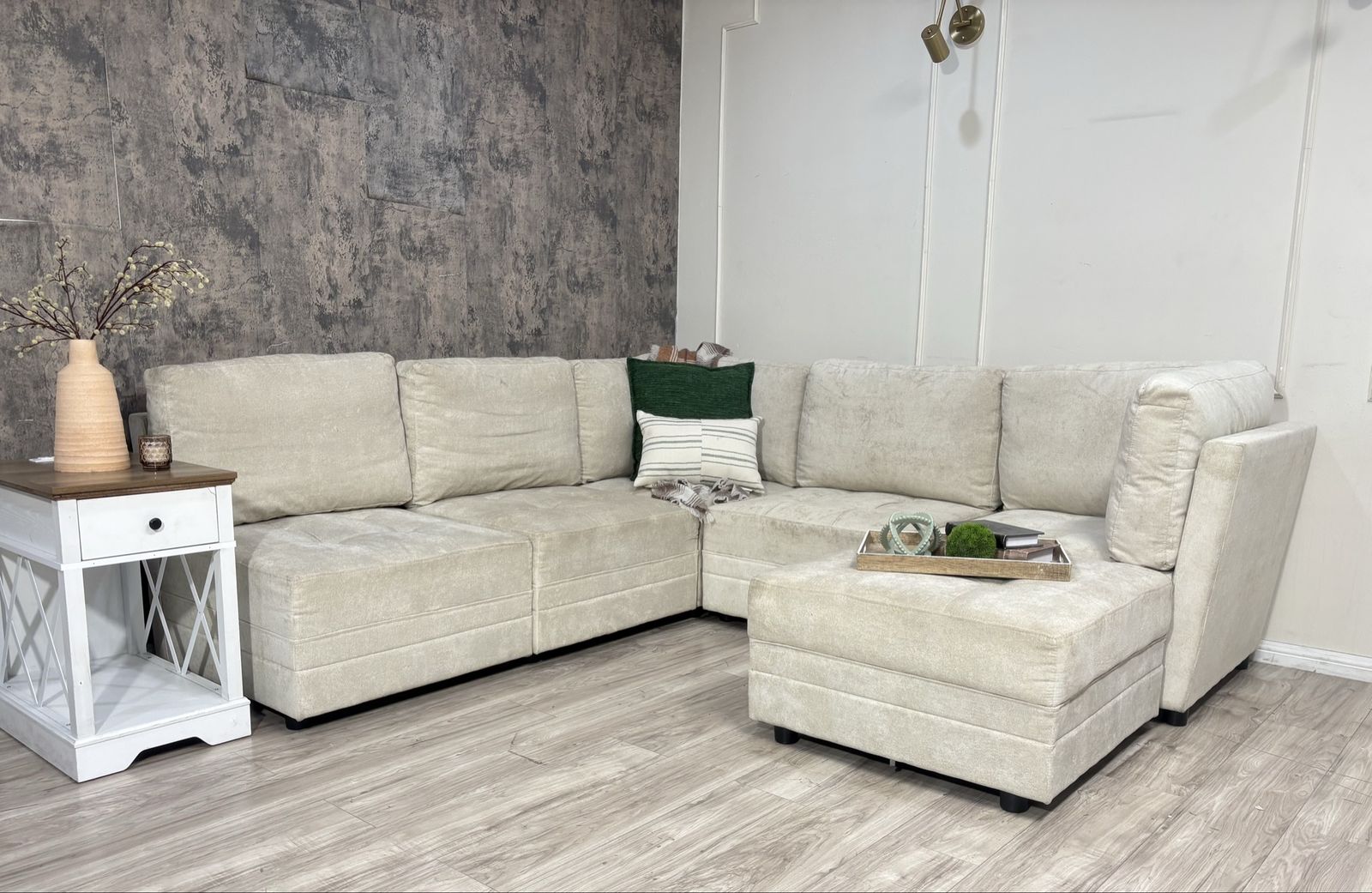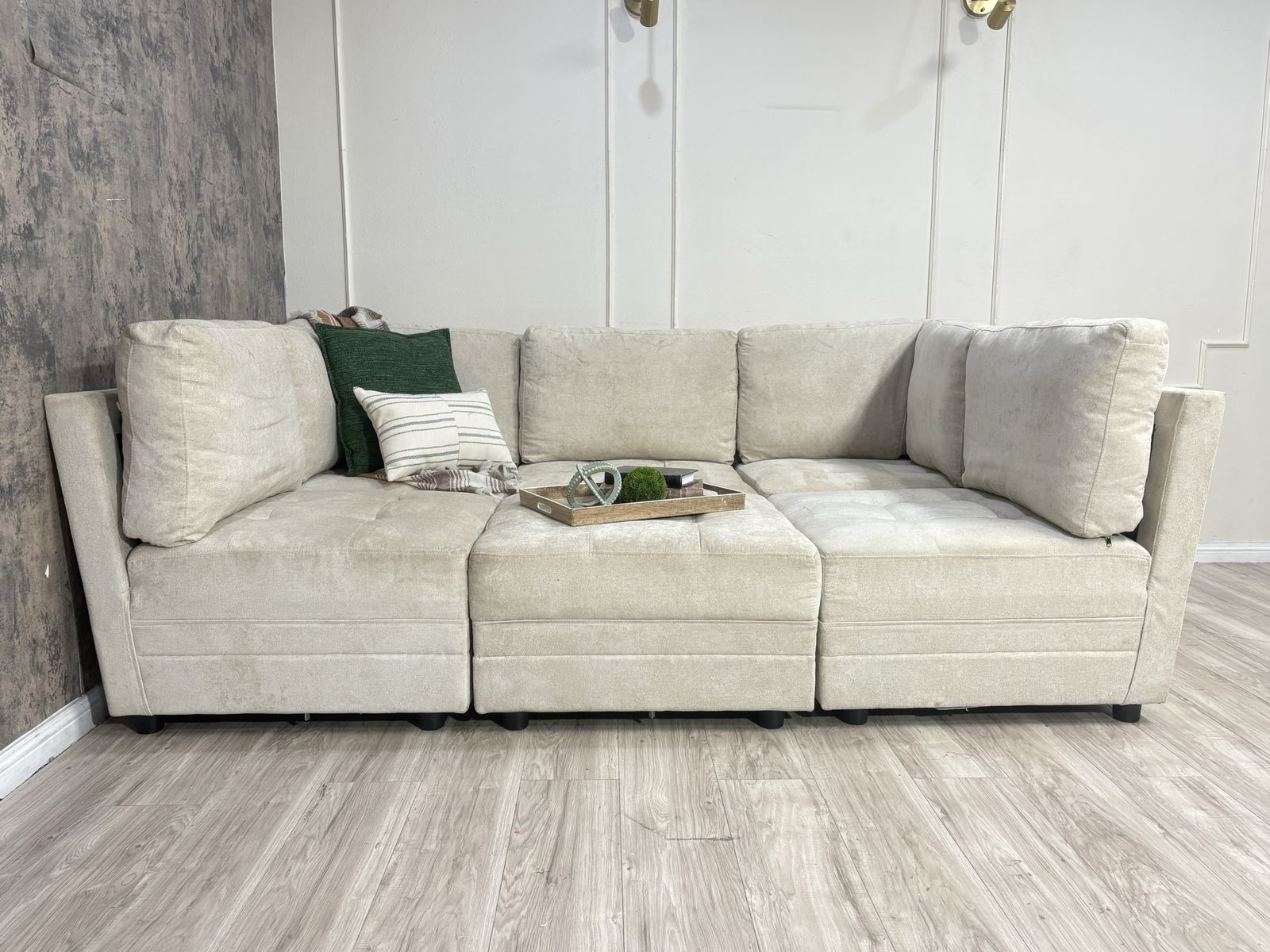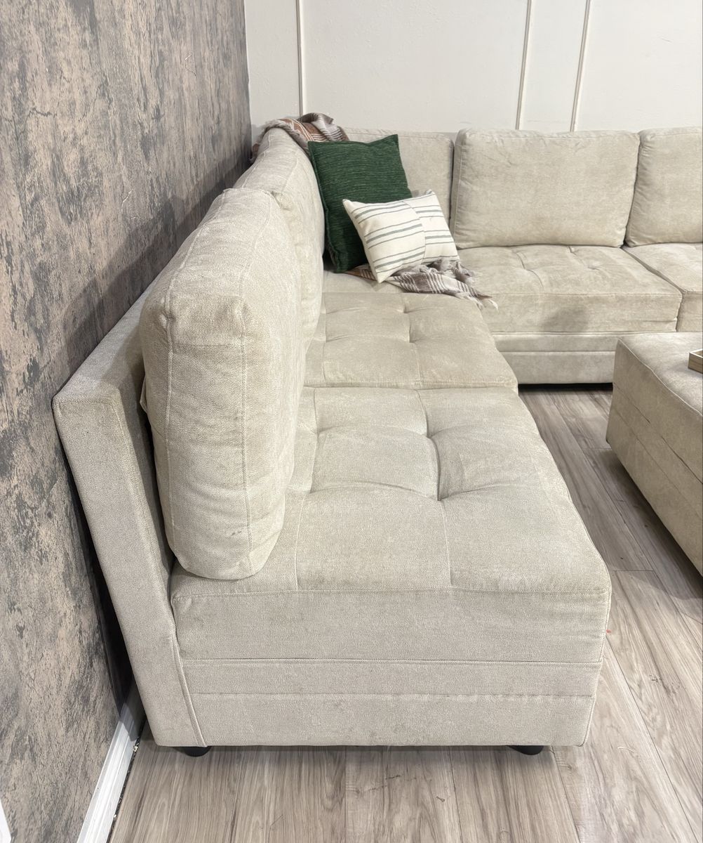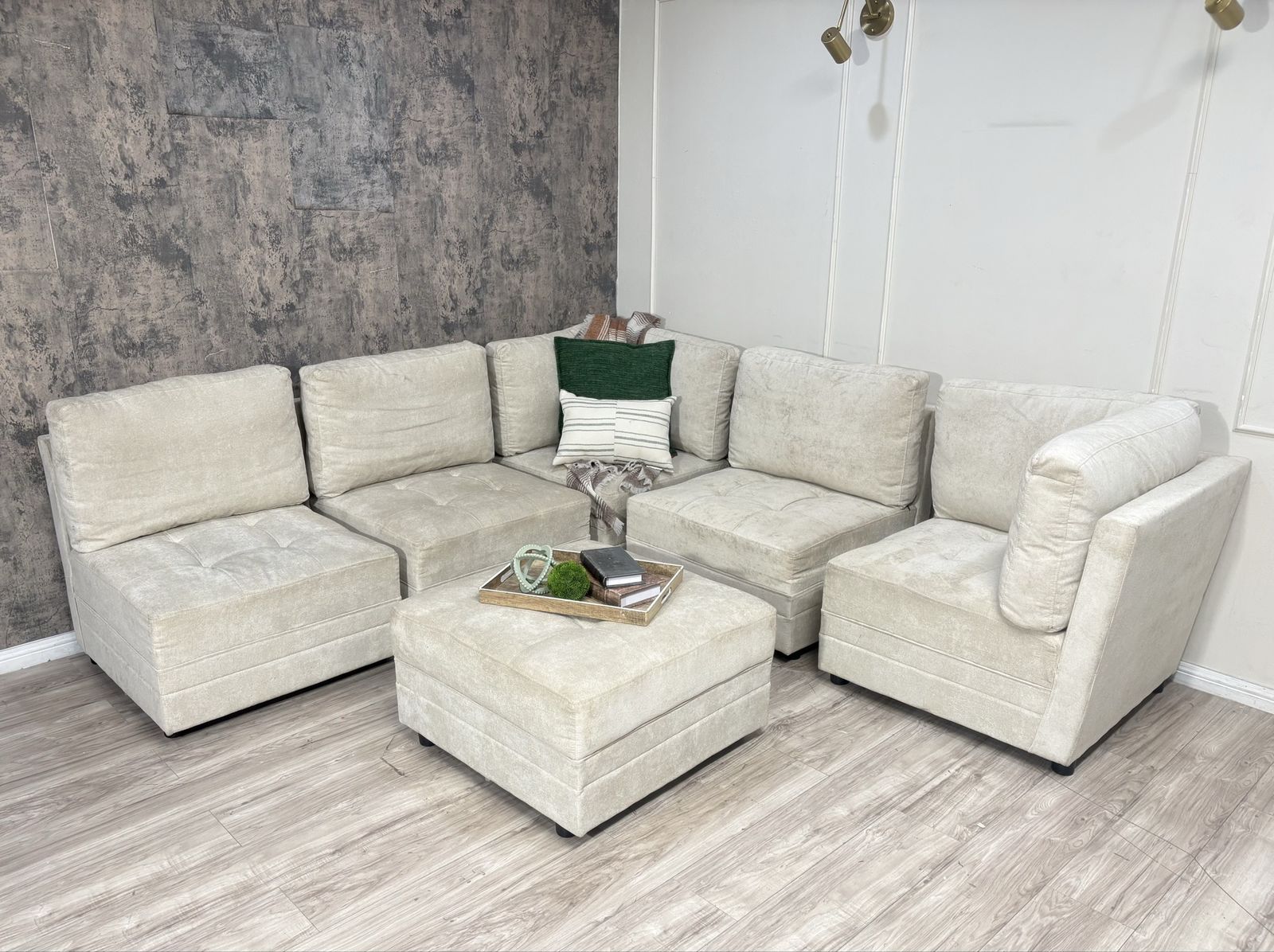 Bring cozy comfort to your living space this season with the Brentwood Fabric 5 piece Modular Sectional Set. This neutral fabric upholstery will fit seamlessly into any interior design. This piece offers enough seating for the entire family and provides ultimate comfort with its high density foam cushions.